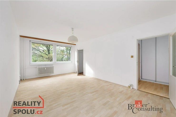 Byt je částečně zařízen, kuchyňská linka s varní deskou a v předsíni vestavěná skříň, okna bytu jsou situována na západní stranu do zeleně. Přímo u domu začíná lesopark a nedaleko je Malešický park.
