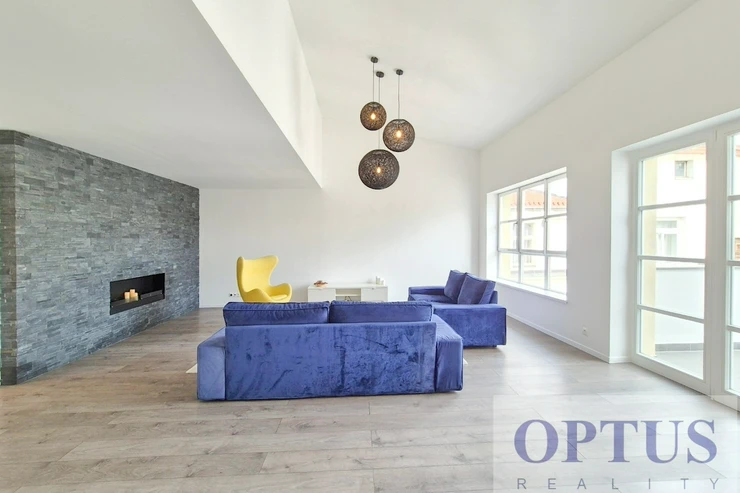 Unique brand new duplex apartment 6 + kitchen corner (in total of approx. 218 m2) + a terrace of 8 m2 facing a quiet courtyard, after high-quality renovation; situated on the 5th floor with elevator in an Art Nouveau house 100% free of short-term accommodation.