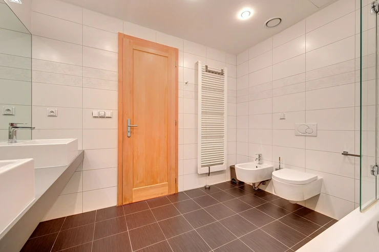 entrance hall with built-in wardrobes, living room with kitchen and beautiful view of the courtyard. three separate bedrooms (two bedrooms have en-suite bathrooms), a third separate toilet and a utility room with a washing machine. The apartment includes one garage parking space, which is already included in the price. The house has a 24-hour reception with security.