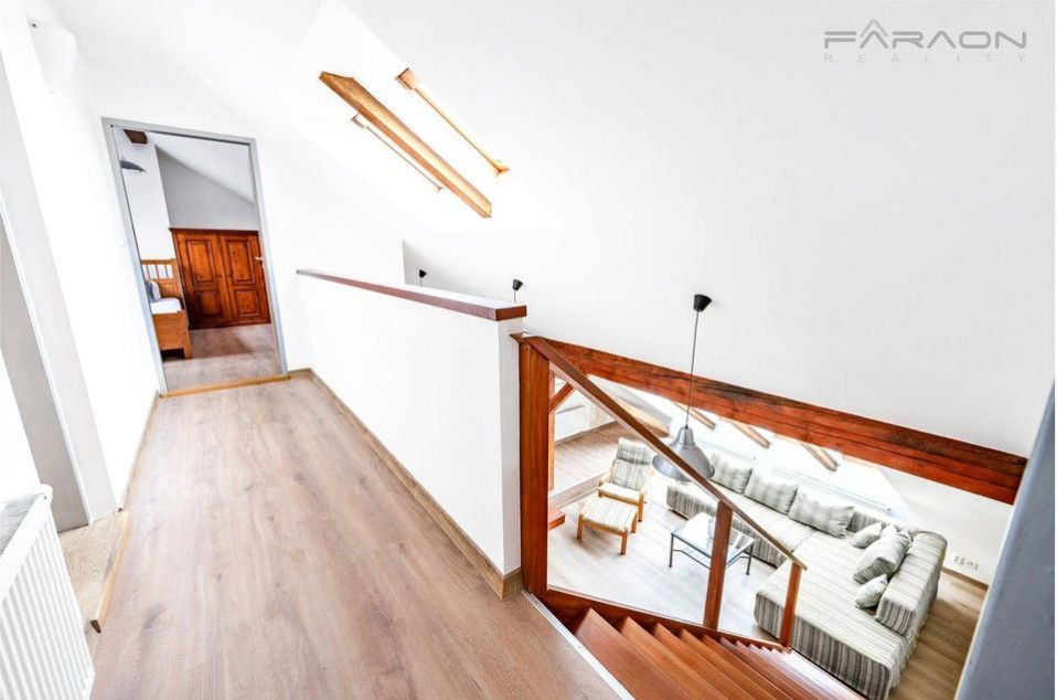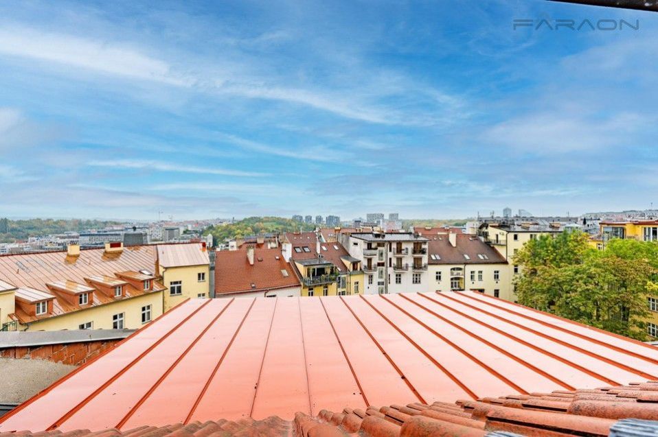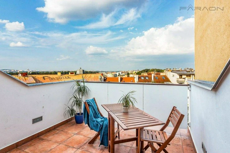 RESERVED - Spacious, quiet duplex apartment 3+kk, with an area of 132 m2, with a terrace of 12 m2, situated on the last two floors of an apartment building with a small elevator, in Prague's Žižkov. The location has excellent access to the city center and is close to 3 large parks.