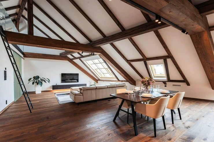 From the direct owner, we offer to rent an exceptional loft of 335 m² located in the heart of Prague 1, on Truhlářská Street. The apartment is situated on the 6th floor of a renovated building equipped with an elevator. The interior was designed by the renowned architectural studio de.fakto, focusing on clean design, practicality, and timelessness. The highlight of the space is a spacious living room connected to a fully equipped kitchen and dining area. The layout also includes a master bedroom, a children's room, a guest room, two walk-in closets, and three bathrooms. The entrance hall is equipped with built-in wardrobes, offering elegant and practical storage spaces. The comfort of the residence is enhanced by a ceiling cooling and heating system, as well as high-speed internet. This apartment is an ideal choice for those seeking premium rental housing with character, space, and an exceptional address.