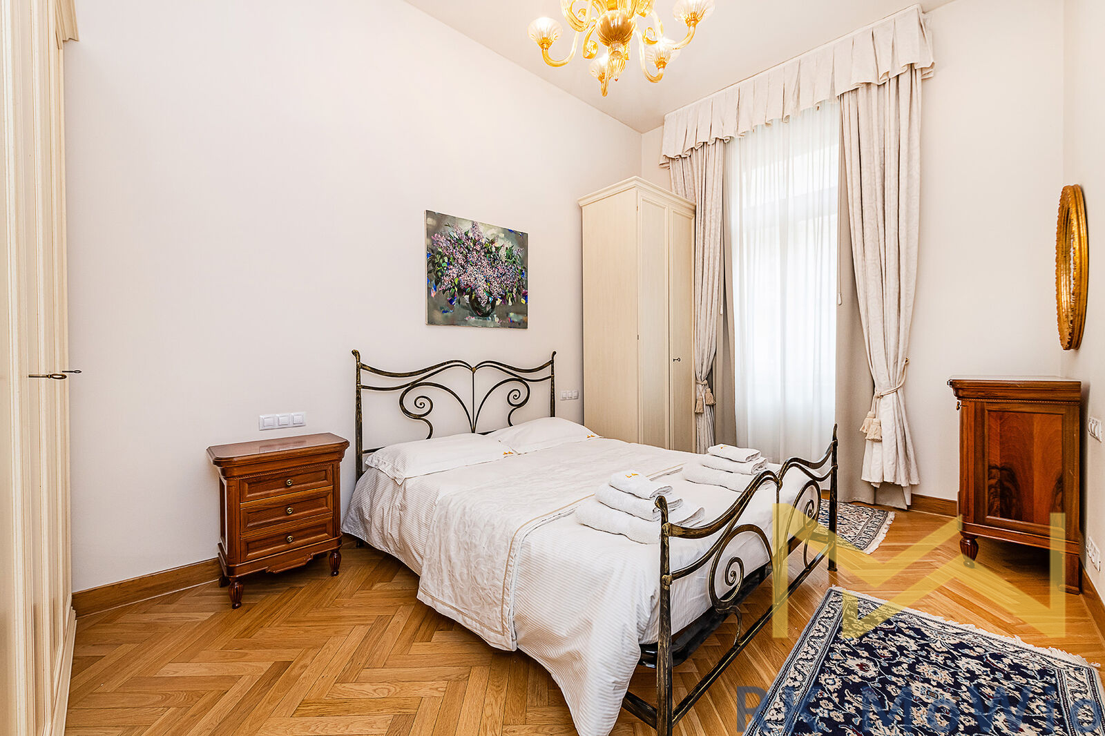 We offer for rent fully furnished apartment No. 2 with a 2 bedroom layout and a floor area of 96 sqm, located on the 1st floor (2nd above-ground floor) of a prestigious building with an elevator on Italská Street, in the sought-after area of Prague 2 – Vinohrady.