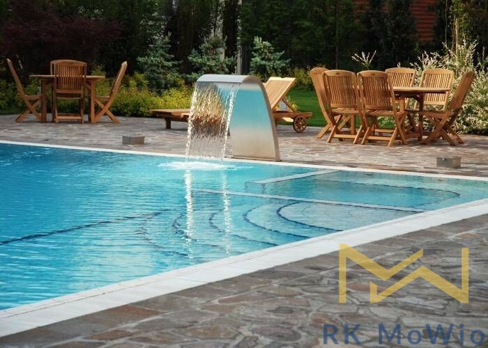 The apartment offers an entrance hall, a living room with a dining area, a kitchenette, 2 bedrooms, and 1 bathroom (with a corner bathtub, sink, and toilet). Apartment features: kitchen unit (including fridge with freezer, ceramic hob, extractor hood, and electric oven), preparation for high-speed internet, possibility to connect a washing machine, wooden floors and tiles. The building includes a garden, and heated outdoor pool. Parking space available for rent for an additional fee from €200/month + 21% VAT = €242/month. Photos are illustrative.