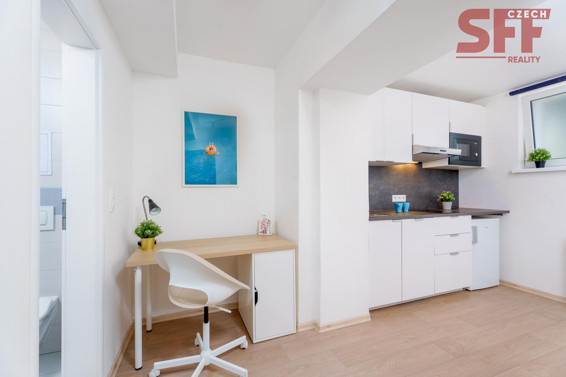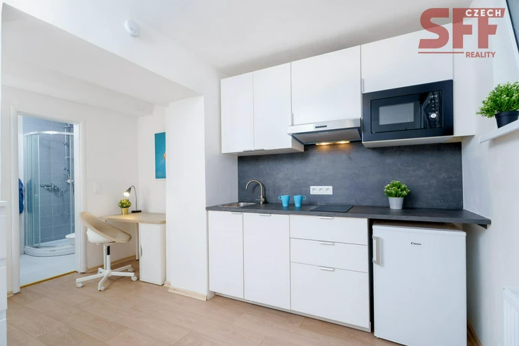No commission! From December 19, 2025 for medium-term (minimum 3 months) or long-term rent, we offer a new, modern, fully furnished and serviced studio (no. 43003) in street Čerčanská, Prague 4, just 2 min. walk from the metro station Kačerov (red line C) with excellent access to the center of Prague.