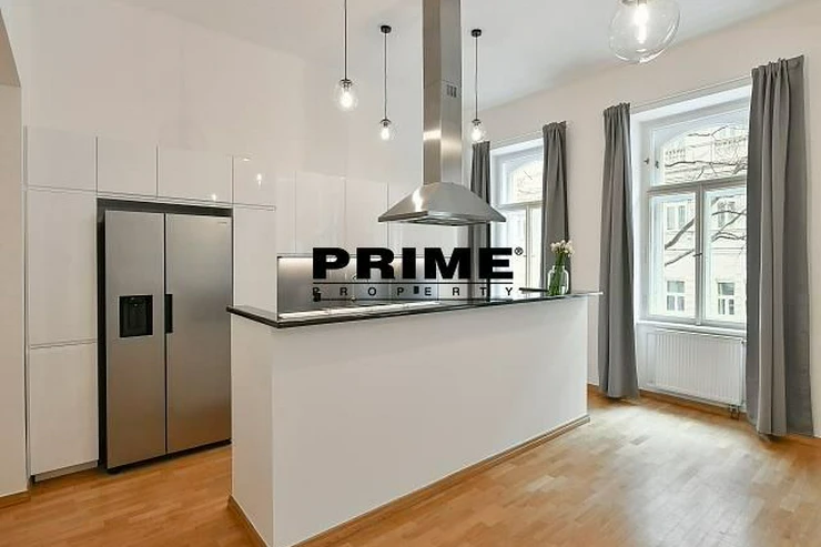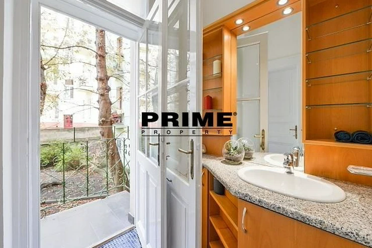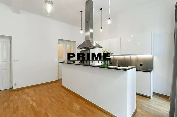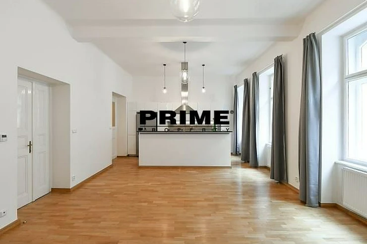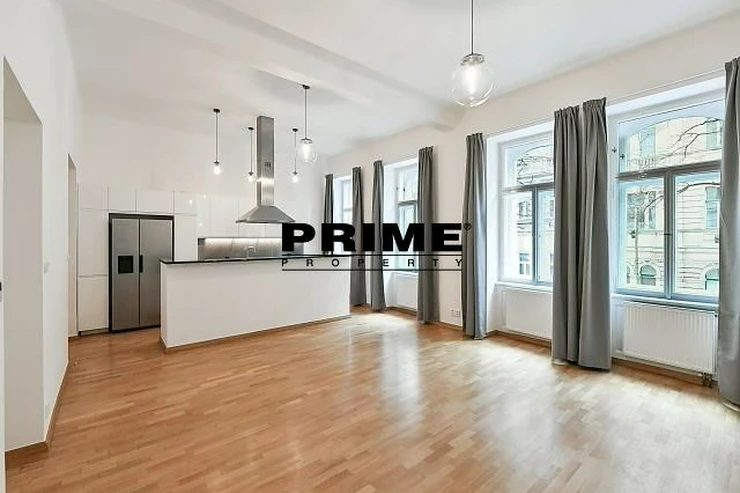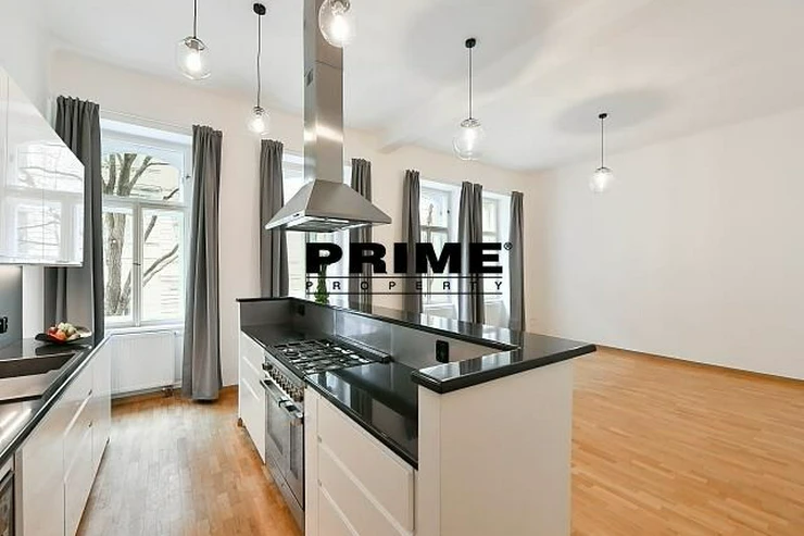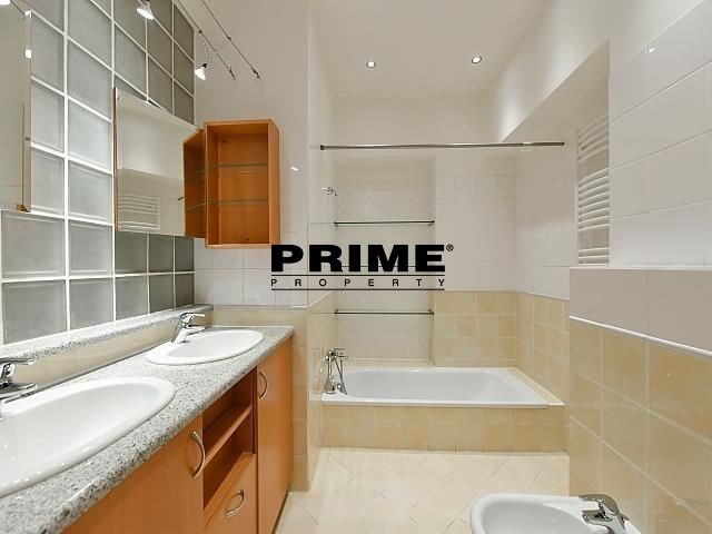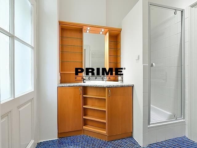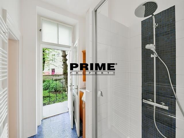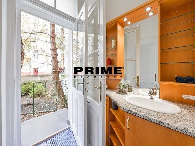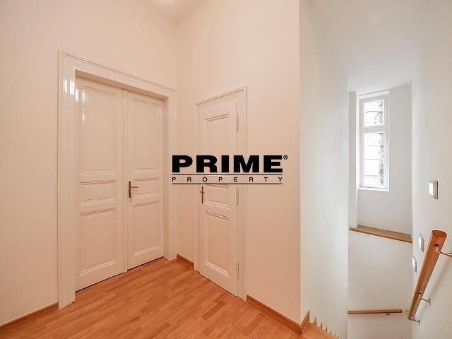 Renovated, 2 bedroom, 2 bathroom, unfurnished duplex apartment for rent, 3+kk, 118m2, with a small balcony and the possibility of a garage (for an extra fee), situated on the ground floor and 1st floor of a renovated Art Nouveau apartment building with a lift (NB: both bedrooms face a quiet courtyard).