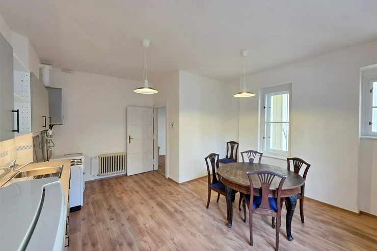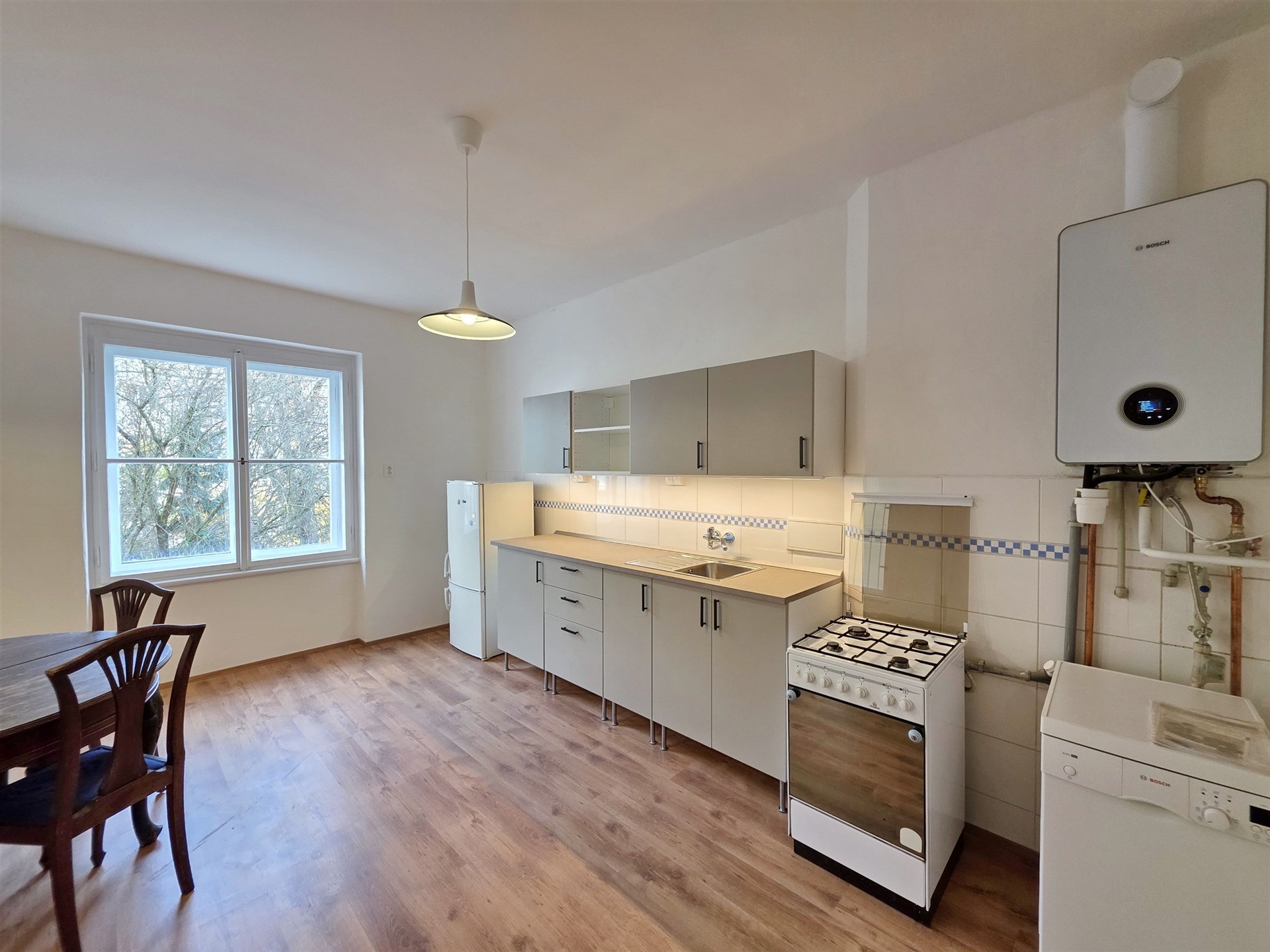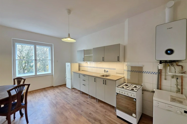 The apartment is unfurnished, and heating is provided by a gas boiler located in the kitchen. The rental price also includes a cellar cubicle of approximately 12 m², ideal for storing larger items or seasonal equipment. The apartment has a balcony of about 3.13 m², offering a pleasant relaxation spot with a beautiful view of the quiet courtyard.