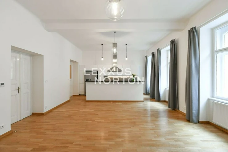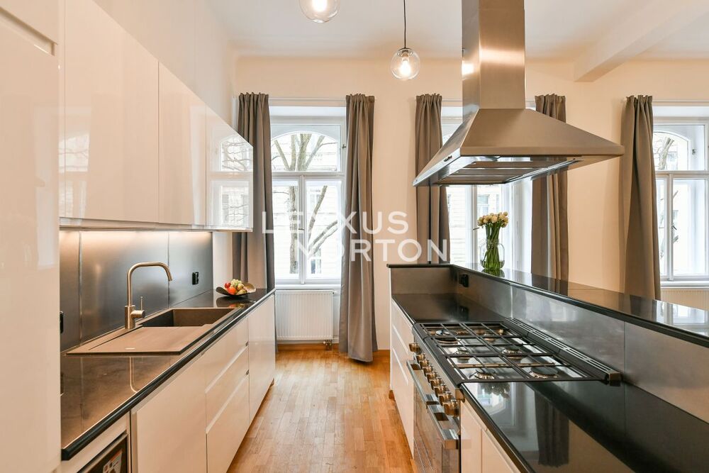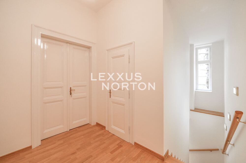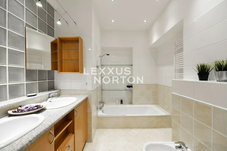 We offer for rent a stylish 2 bedroom duplex apartment with a balcony, with an area of 118 sqm, spread over the ground floor and first floor of an elegant building with an elevator. The apartment is located in one of the most sought-after parts of Prague 2 – Vinohrady, which is known for its peaceful atmosphere, abundance of greenery, excellent transport links, and complete civic amenities in the immediate vicinity.The interior consists of two floors with an entrance hall, a spacious living room with a newly renovated and equipped kitchenette, 2 bedrooms, and 2 bathrooms (bathtub, shower, toilet, and bidet). The apartment has a balcony. It is possible to rent a separate garage for a monthly fee of CZK 6,500.The apartment is offered partially furnished and includes modern kitchen appliances, a sofa set, a dining set, and a washer/dryer.Vinohrady is one of the most desirable locations in Prague. They have a great location where everything you need can be found within 10 minutes of walk. The area has excellent transport accessibility - 2 metro stations - Namesti Miru and I.P. Pavlova, several tram lines and buses. The Wenceslas Square can be reached by public transport in just 5 minutes. The road connection is also good. The motorway ring road can be reached in just 12 minutes by car and the Vaclav Havel Airport in 27 minutes. There are complete civic amenities in the vicinity of the house - pharmacy, polyclinic, post office, supermarkets, offices, banks, local shops, restaurants and bars. Nearby, there are kindergartens, primary and secondary schools, a college and playgrounds. For leisure activities you can use Havlickovy and Riegerovy sady with a beautiful views of Prague.The monthly advances for building services are charged at CZK 4,500. The ulities are transferred to the tenant.The inquiring client agrees to pay a commission of 1 month's rent plus VAT.If you cannot view the property in person, we also offer you a video tour from the comfort of your home in real time via Messenger, WhatsApp and other communication platforms.