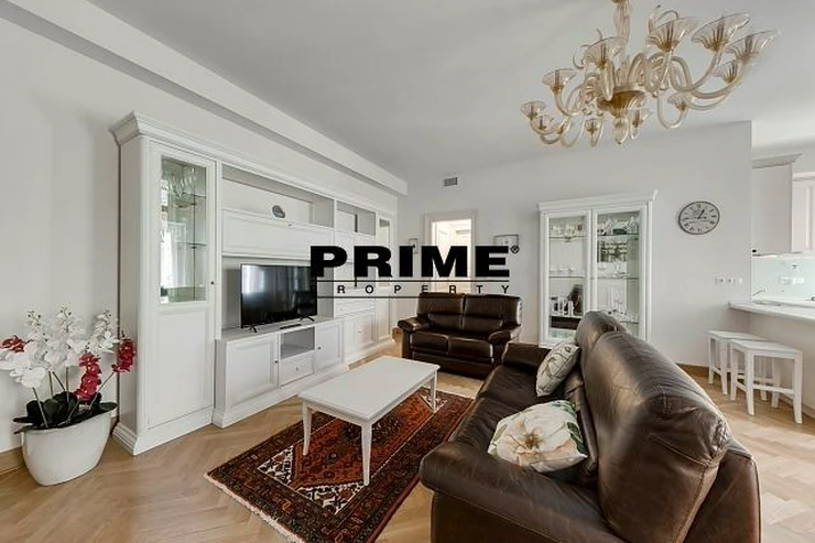 The property is furnished with quality Italian furniture and faces the street. The property comprises: an entrance hallway, a living room with a dining area and an open, fully fitted kitchen (gas cooking hobs, electric oven, refrigerator and a dishwasher), 2 bedrooms, 1 bathroom (with a corner bathtub, sink, toilet and a bidet) and a separate WC (toilet and a sink).