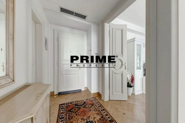 Wood parquet and tiled floors. Air conditioning, washing machine, TV set, internet connection (for EUR 50 + VAT/month), satellite connection, video entry phone. A shared garden with a heated outdoor swimming pool is available for tenants´ use. Garage parking is possible in the underground garages at an extra cost of 5,000 Kč + 21% VAT per space per month.