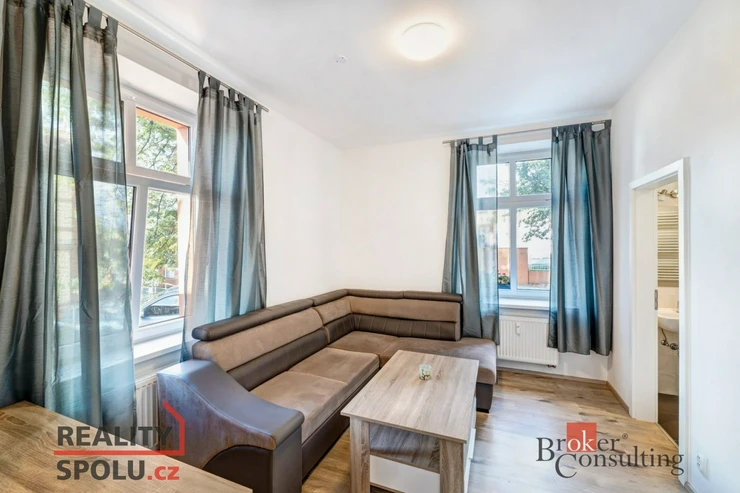 Byt je kompletně zařízený-kuchyňská linka, sporák, mikrovlnka, sedací rohová lavice a jídelní stůl, rozkládací gauč v obývacím pokoji, v předsíni vestavěná skříň a věšák s botníkem.