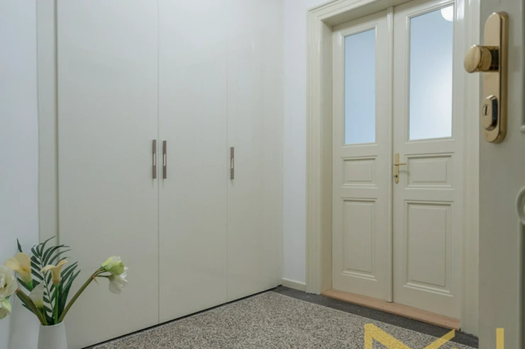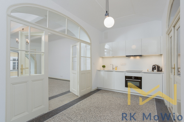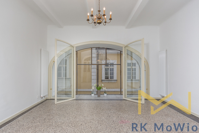 For rent we offer an unfurnished atypical apartment/studio of 76 sqm, with a winter garden, located on the 1st floor (2nd above ground level) of a building with an elevator, on Martinská Street, Prague 1 – Old Town.