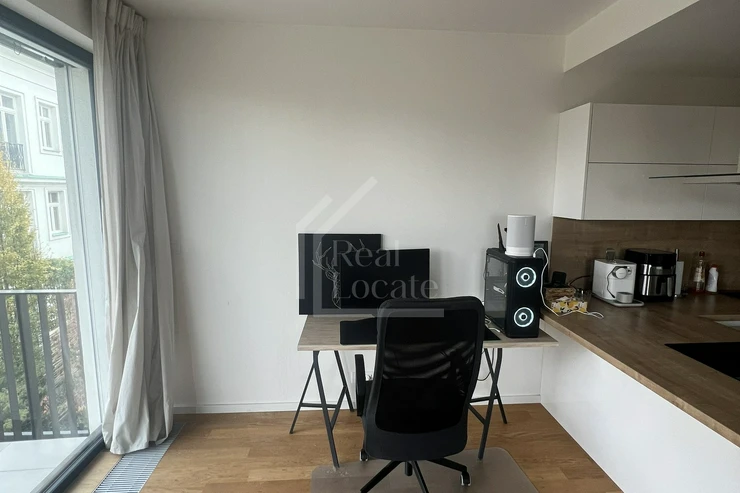 We are offering for rent a bright and spacious 1-bedroom apartment (2+kk) with a total floor area of 52 m², located in a modern residential building in the attractive area of Prague 6 – Nádraží Veleslavín. The apartment is set in a quiet location overlooking greenery and features a lovely terrace, ideal for relaxation.