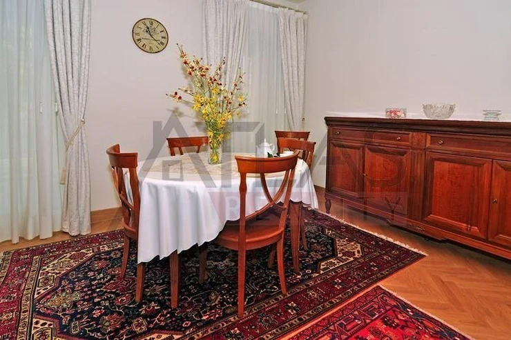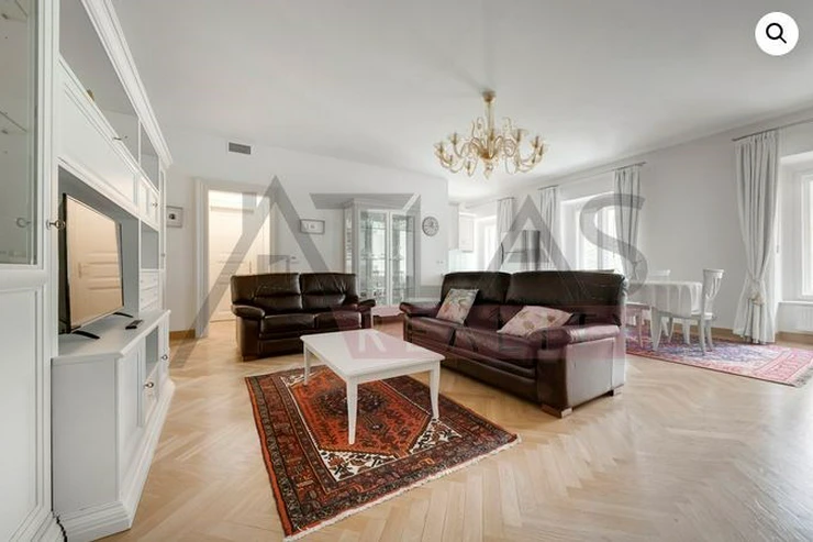Rental of a fully furnished 3+kk apartment, 96 m2 on the 1st floor with an elevator in a prestigious classic Art Nouveau building with high ceilings and original decorations after a complete renovation in 2006. The building is located in the residential area of the historical center of Prague, just 200 m from Riegrovy Sady park, 300 m from the Náměstí Míru metro station on line A, and 500 m from Wenceslas Square - Museum metro station on lines A and C, and the shopping and cultural center of Prague. The apartment is fully furnished with pseudo-antique Italian furniture. The living room is 45 m2, with a kitchenette equipped with a refrigerator with freezer, dishwasher, gas stove, extractor hood, plus two bedrooms of 16 m2 each, bathroom with sink, corner bathtub, toilet, and bidet. The apartment has a telephone line, high-speed internet, TV, satellite, parquet and tiled floors, and high-standard materials were used during the renovation. The building has underground garages, an elevator, a large pool 8 x 11 m with a depth of 1.2 meters with a hydromassage corner in the courtyard, surrounded by a terrace and greenery. There is also a camera system, security, a caretaker, and pool use included in the price. Possibility to rent a garage. For more details and managing visit call English speaking agent Jan, phone 775 609 626.