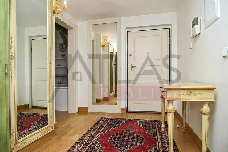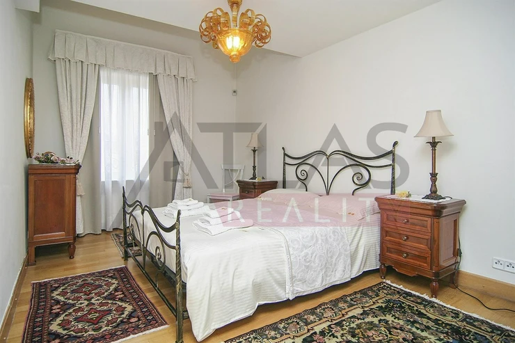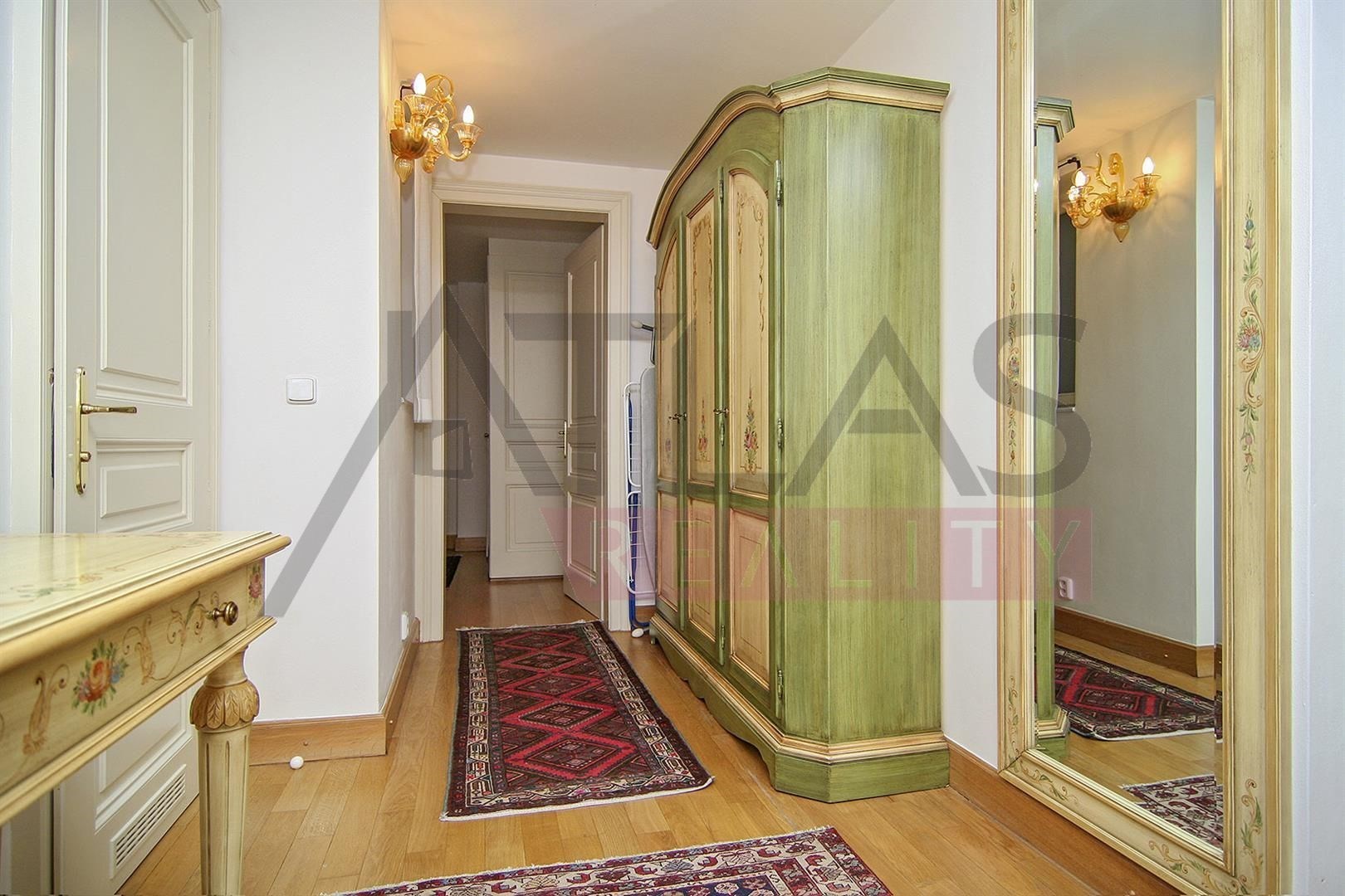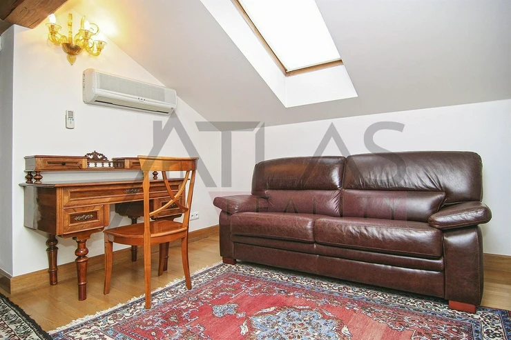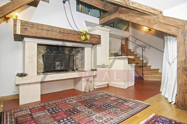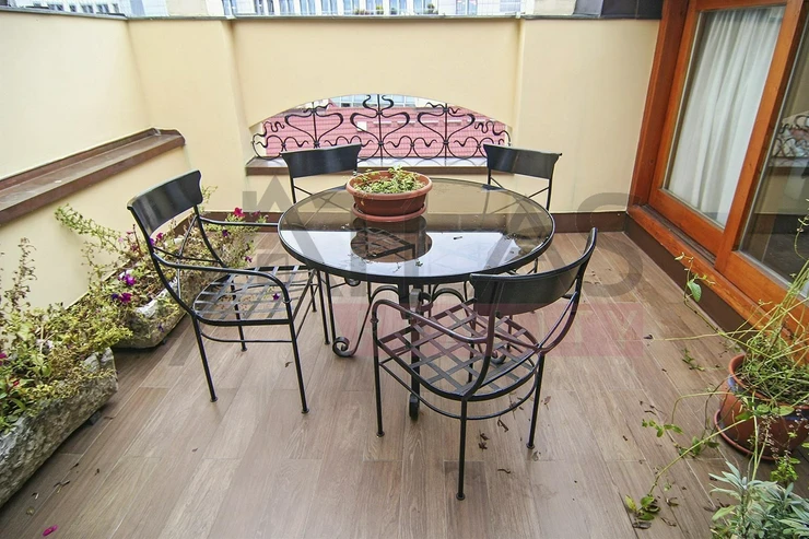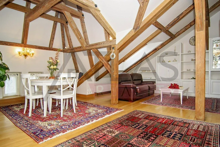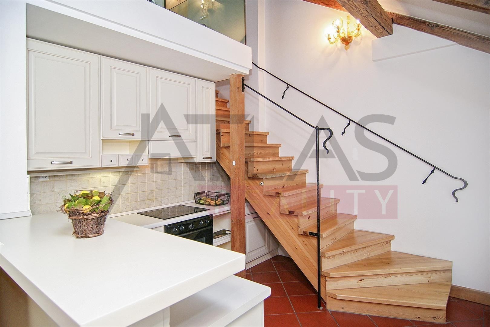 We offer for rent a magnificent, above-standard furnished attic duplex two bedroom apartment 128 m2, (3+kk) with cosy office corner for working on a computer with a sofa), apartment has the terrace with seating. Apartment is situated on the 5th and 6th floor of a reconstructed apartment building in the center of Prague. In building is lift. The apartment is furnished with new antique furniture, has visible wooden beams, which give the apartment a unique atmosphere, in the living area is also a very large decorative fireplace. The lower floor comprise of: entrance hall, living room with fireplace, dining area, entrance to the terrace and with open fully equipped kitchen with appliances (stove, refrigerator with freezer and dishwasher), one bedroom and large bathroom (with bath, toilet, sink and bidet). In upper floor is the gallery conected with the living room with second bedroom and a cosy computer corner with a sofa. Apartment feature air conditioning, washing machine, refrigerator, dishwasher, video, hifi, TV, satellite. Parquet and tiles on the floor. Excellent transport links: Náměstí Republiky metro station and trams no. 15, 8, 6, 26, 1. The building is located in the city center, in a quiet street, only a 2-minute walk from tram stops, Náměstí Republiky metro station and Palladium shopping center. 10 minutes walk to Wenceslas Square, close to Billa supermarket, shops, cafes, bars and restaurants. All civic amenities are in place. Apartment tenants can use the swimming pool in the garden on Italská Street. Security deposit: two month rent. Rent: EUR 2.600 + services total 550 EUR + commission for real estate agency. Energy performance of the building: G (not communicated by the property owner). Only long-term rent.Available from 1.2.2026