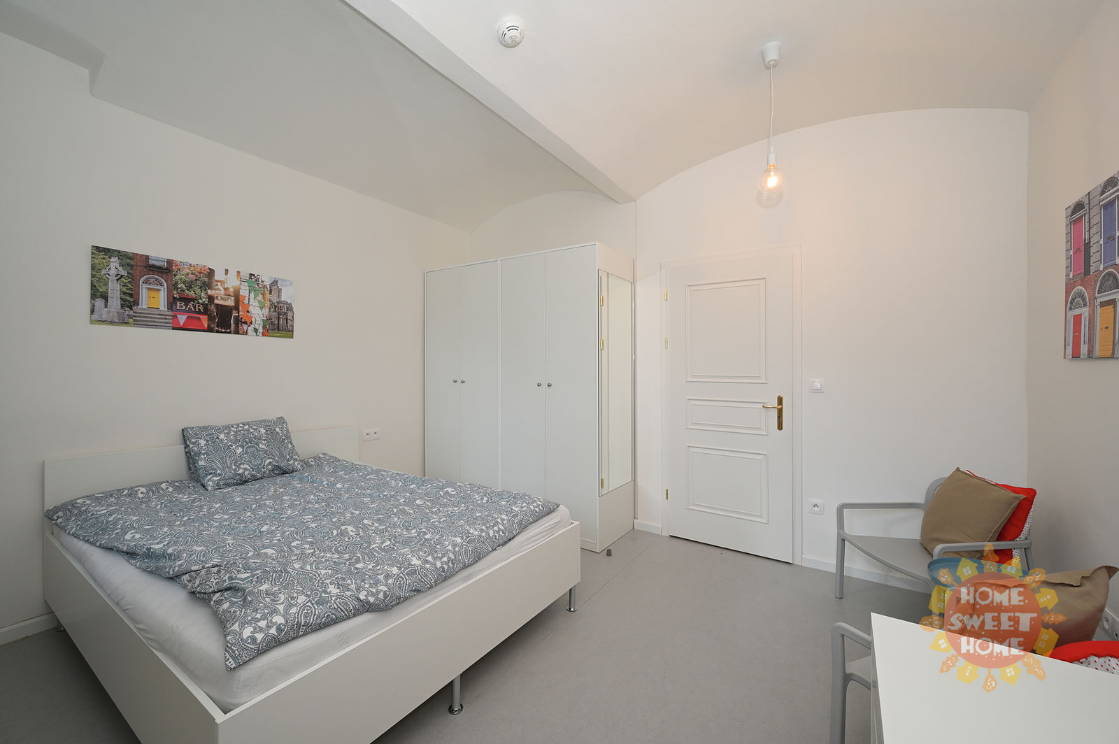 The room is located in a two-room apartment with one bathroom and an extra toilet. Both the apartment and the room are fully furnished. The shared areas are equipped with an iron, cleaning supplies, and other necessities for everyday use. The lockable room itself is equipped with a double bed, desk, armchair, wardrobe, blanket, and pillow. Internet and cleaning of common areas (once a week) are included in the rent. Tenants also have access to a fitness center, laundry room (coin-operated), and shared terrace.