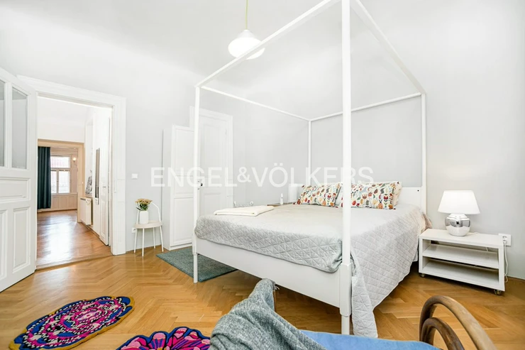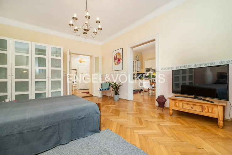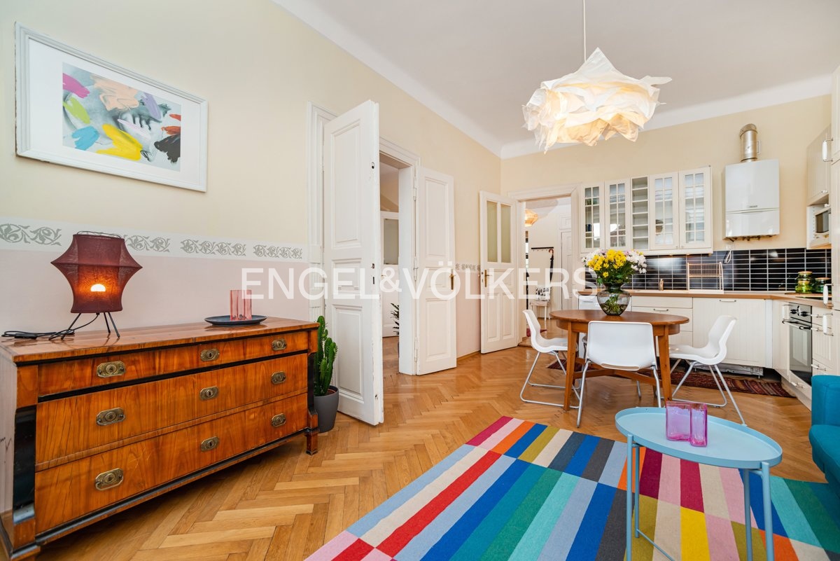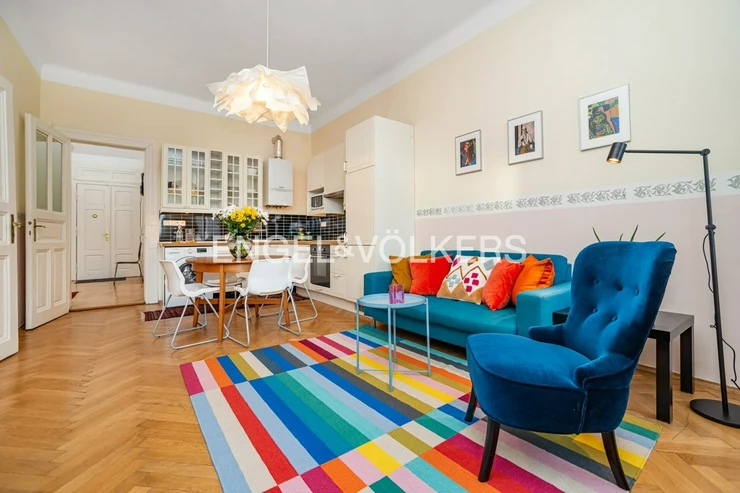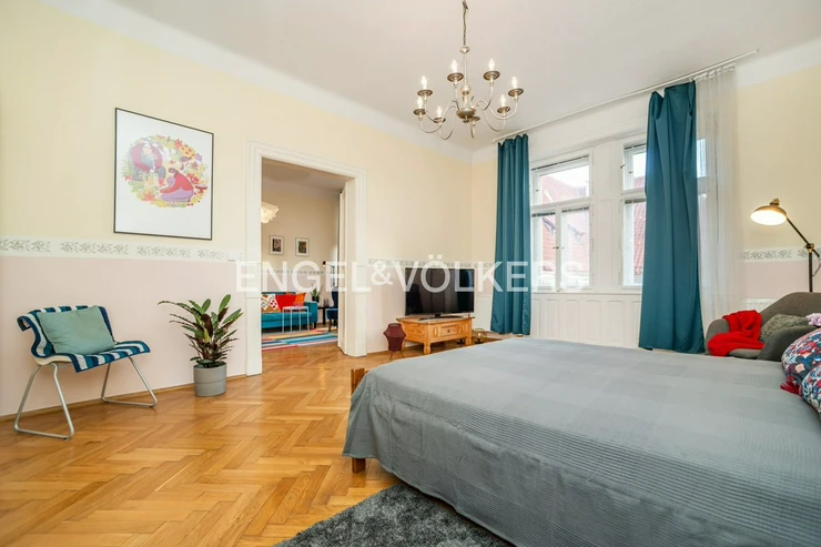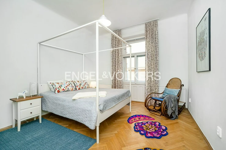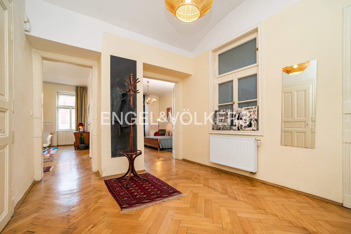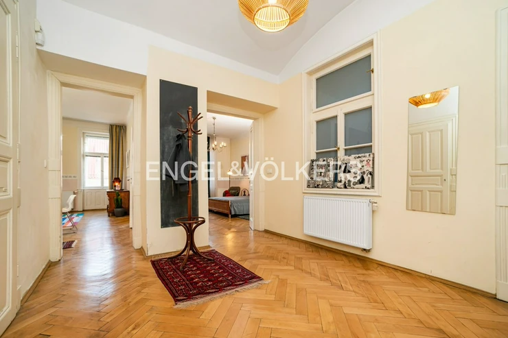 We offer exclusively for long-term rent a beautiful, fully equipped 3+kt apartment with an area of 90 m², located on the 1st floor of a well-maintained building without an elevator on the quiet street V Jirchářích, right in the heart of Prague 1, just a few steps from the Vltava River.