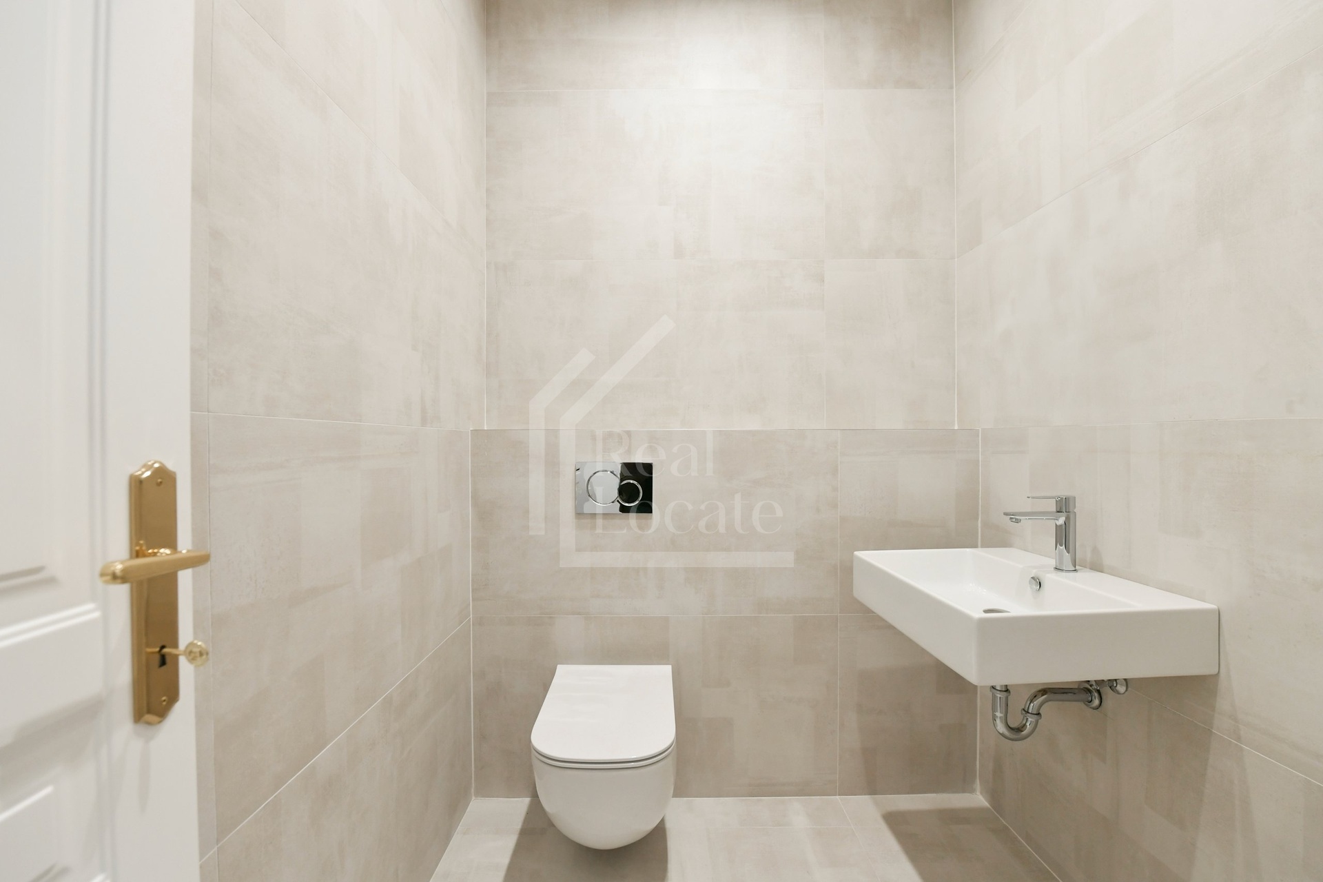 We are pleased to offer for rent a unique 2-bedroom apartment with a total floor area of 97.5 m², located on the elevated ground floor of an elegant, renovated historic building in the sought-after residential area of Vinohrady. The interior was created in collaboration with Italian architects, combining modern city living with respect for the original architecture, high-quality materials, and timeless design.