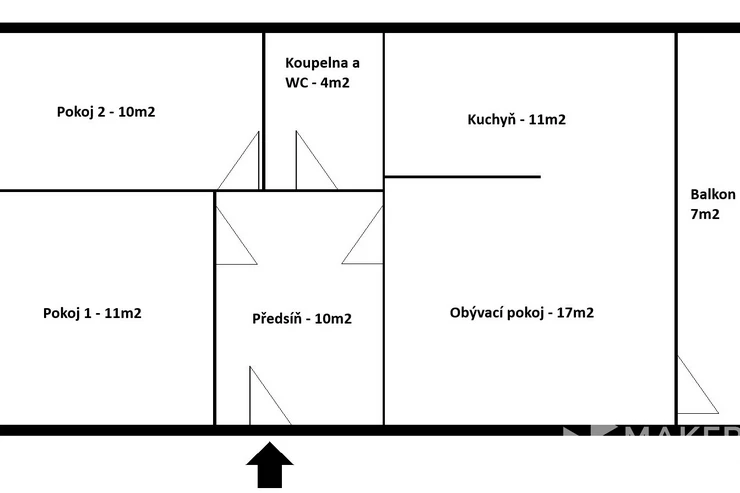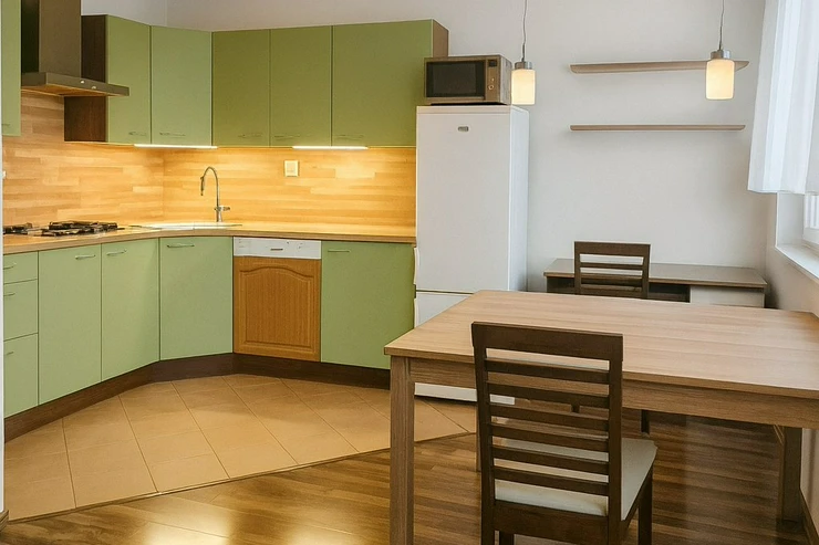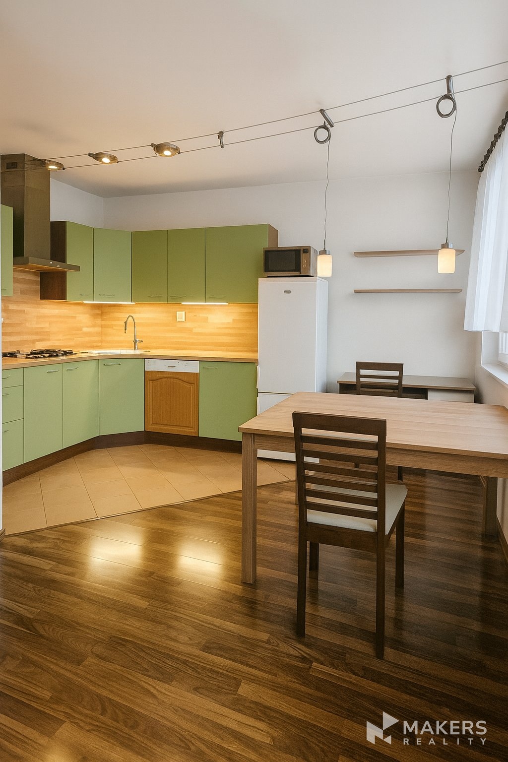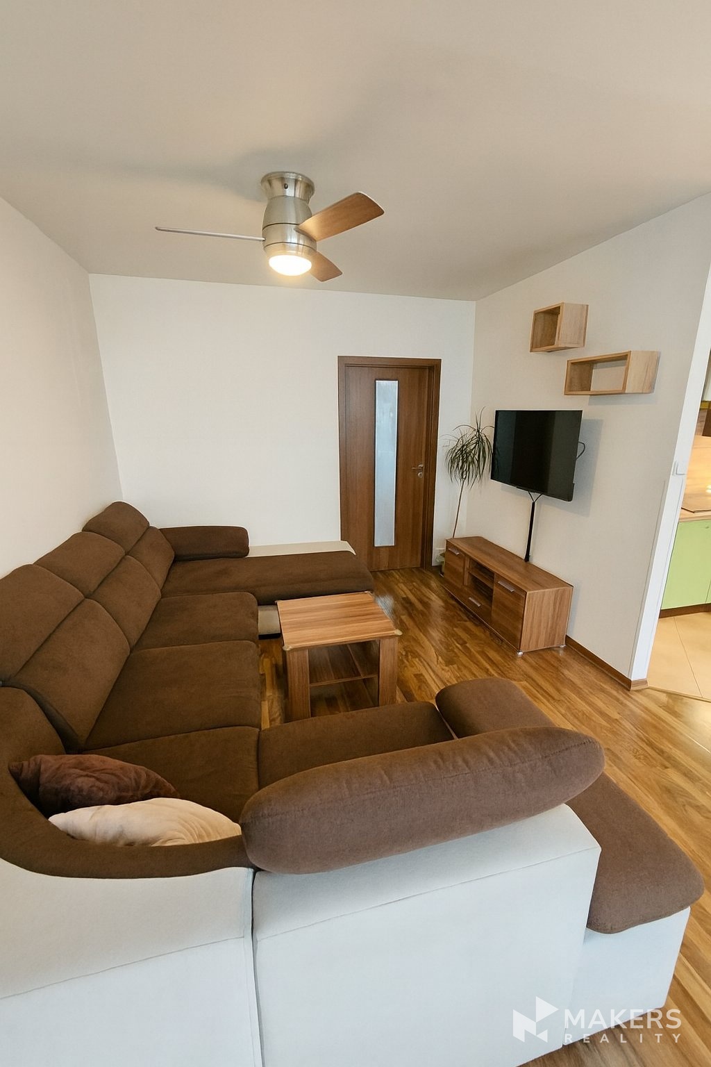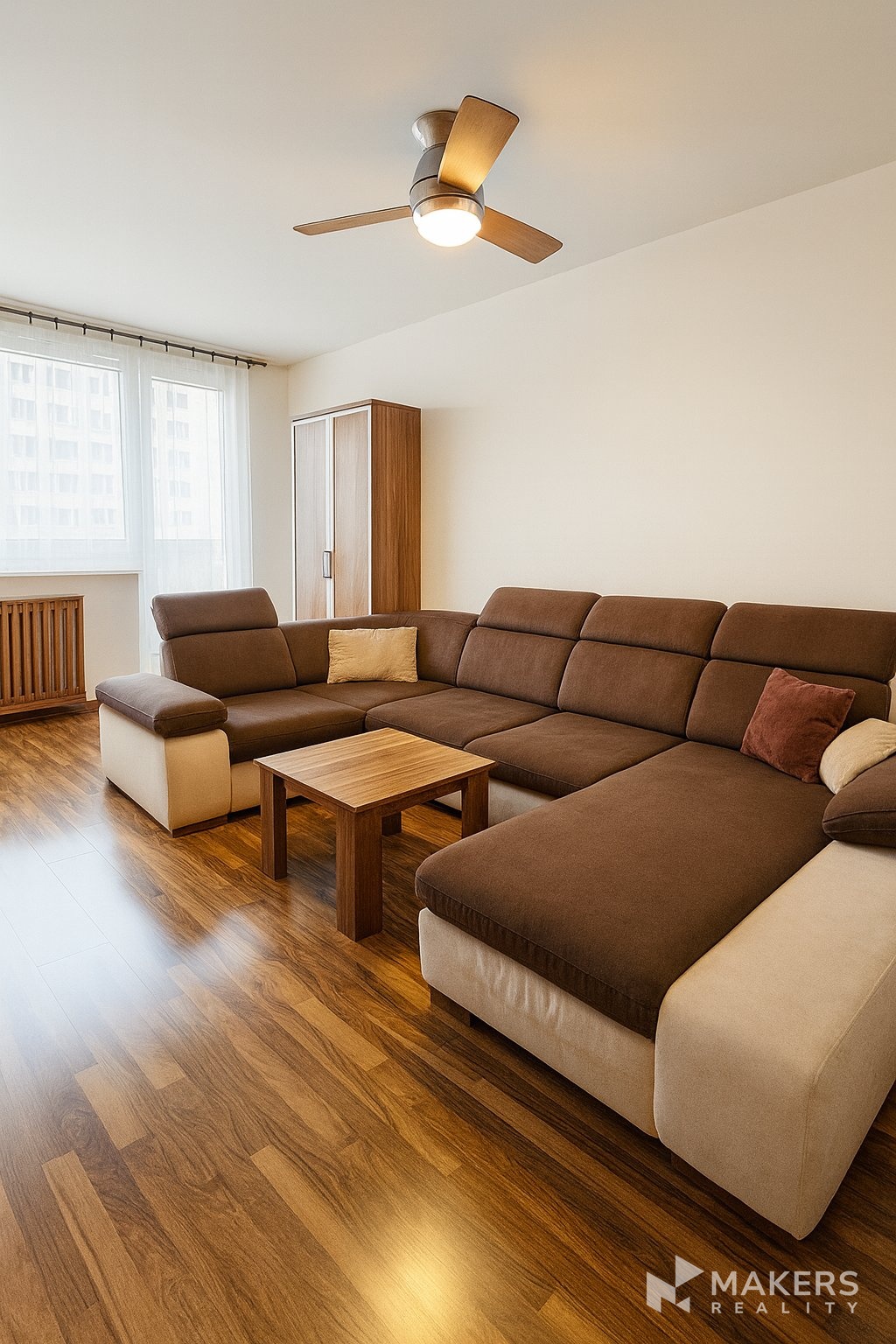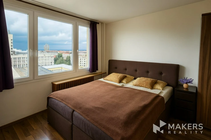 A bright and spacious 3+kk apartment with a total area of 63 m² and a 7 m² loggia is available for long-term rent. The apartment is located on the 7th floor of a renovated panel building with an elevator, in the quiet and well-connected district of Prague 4 — Pankrác, on Kotorská Street. The apartment offers a beautiful view, peace, and excellent transport accessibility.