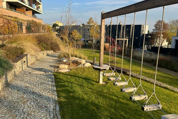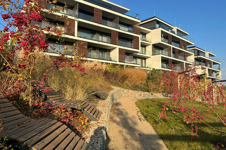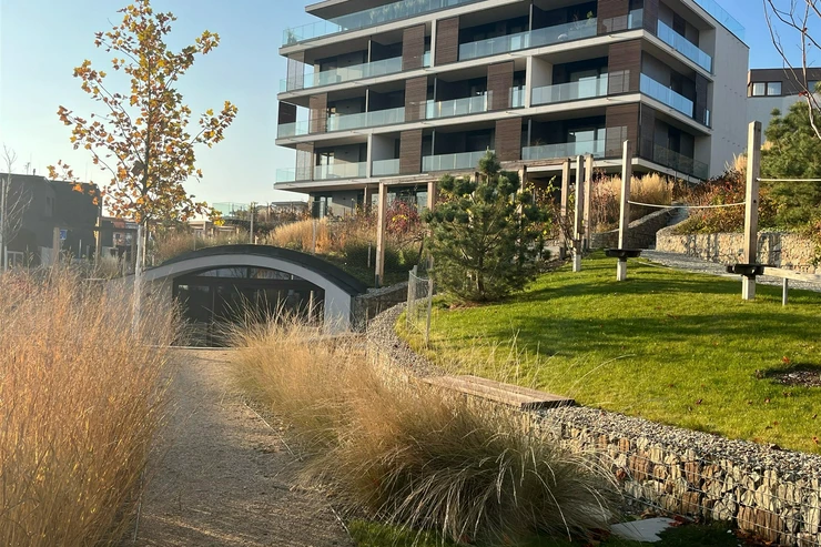 The Císařská Vinice complex is known for its calm atmosphere, yet it is situated in close proximity to the bustling city center. Within walking distance, you will find the Ladronka and Klamovka parks, ideal for sports, walks, and relaxation. Good transport accessibility is provided by the proximity of tram and bus stops (the bus stop is just a 3-minute walk away).