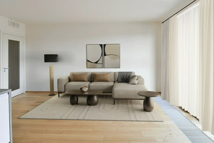 The apartment is partially furnished. Images from the visualization of the living room and bedroom are for illustration purposes only. If needed, we can help furnish the apartment quickly and at a reasonable price.