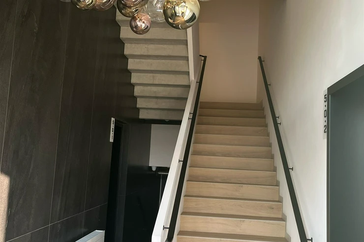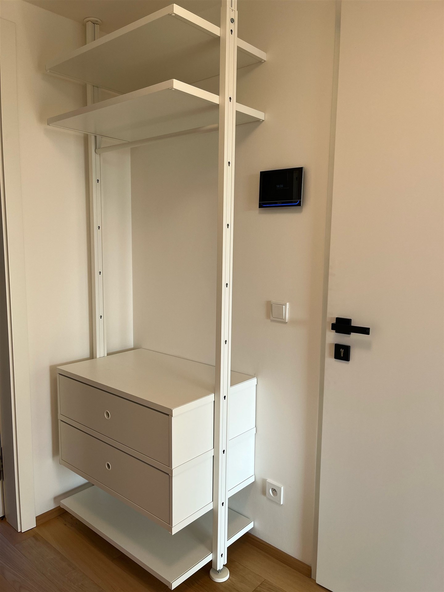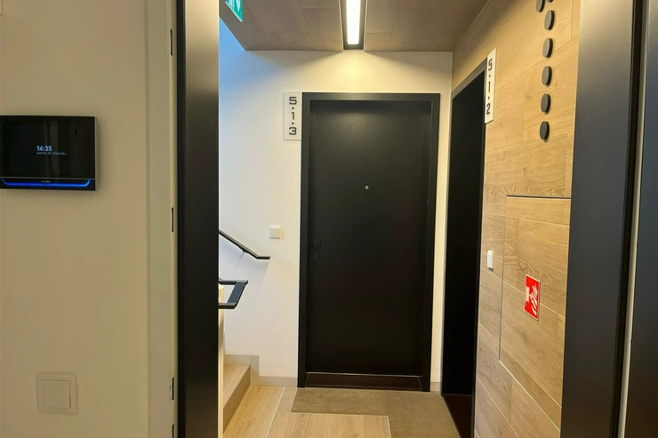 In the living room with a new, spacious kitchen unit, you will enjoy an induction hob, built-in refrigerator, freezer, dishwasher, and oven. The bedroom has built-in wardrobes, and there are storage spaces in the hallway. The apartment also includes a cellar (2.5 m²). The total ceiling height in the apartment is 2.65 m, creating a spacious feel.