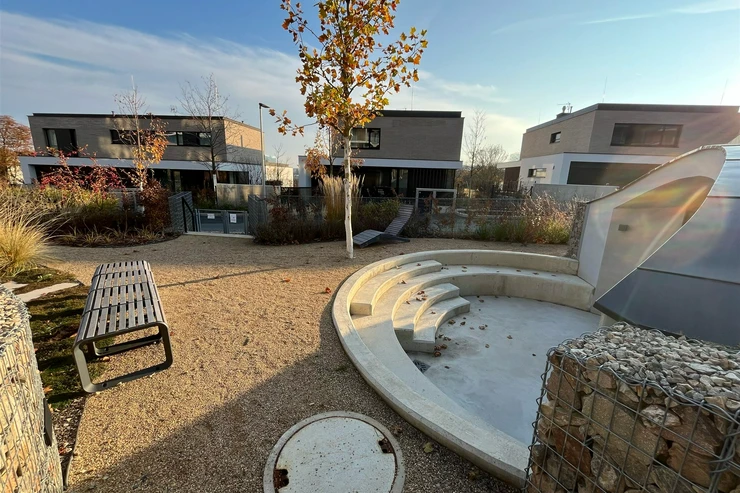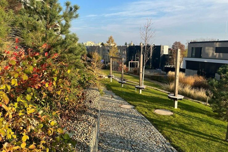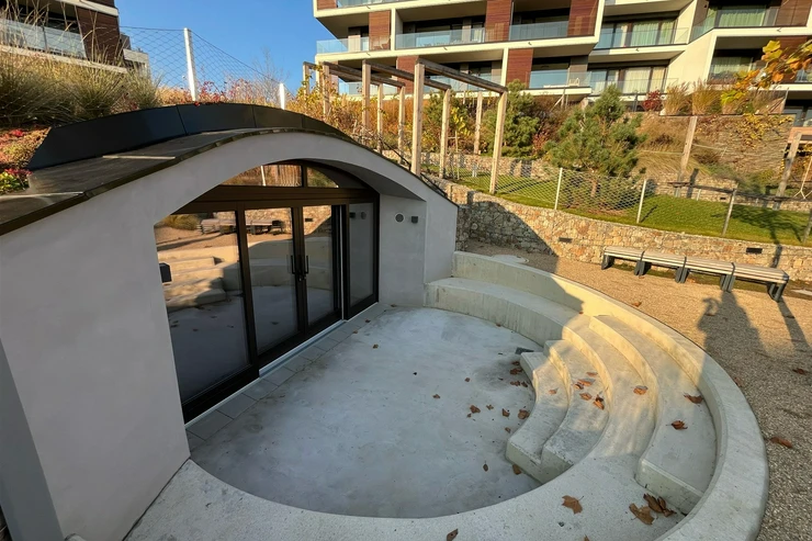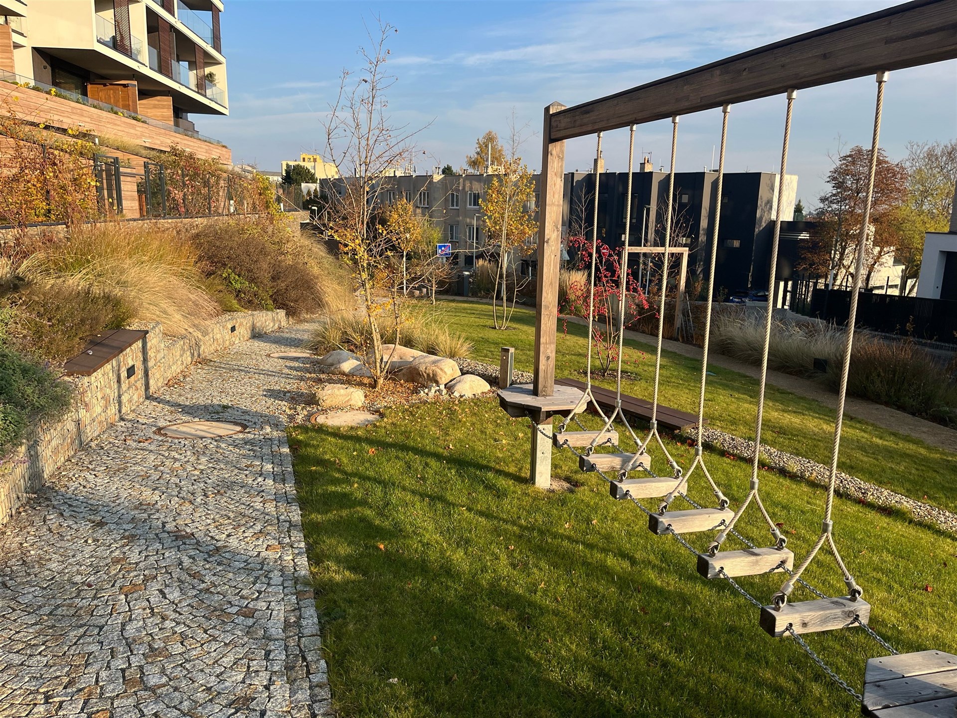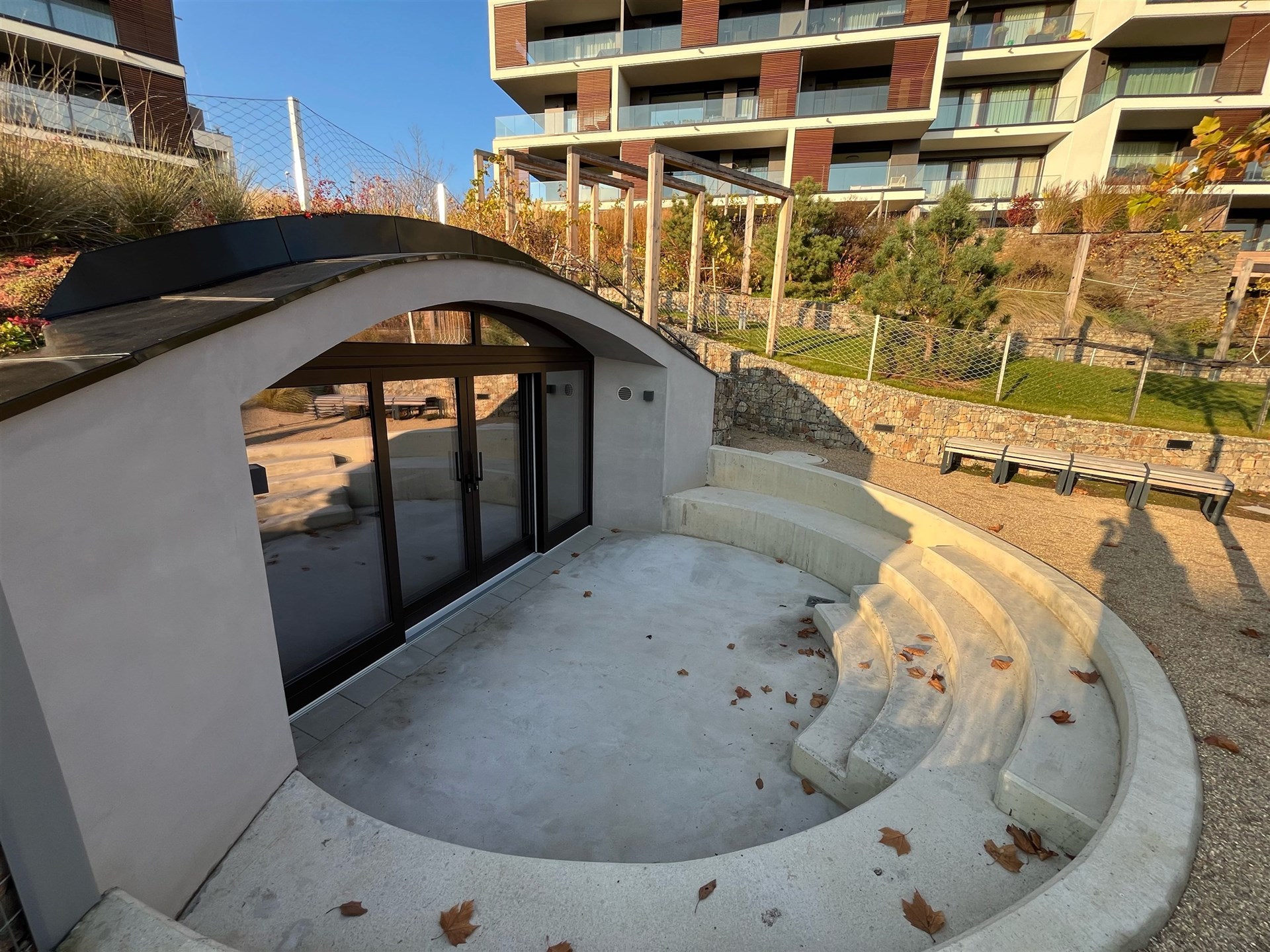 The complex includes a beautiful garden designed by renowned landscape architect Ferdinand Leffler, planted with mature trees, shrubs, flower beds, and grassy areas. Residents have access not only to the garden, where they can relax on sun loungers and benches, but also to a stylish wine cellar equipped with a grill for family or friendly gatherings.