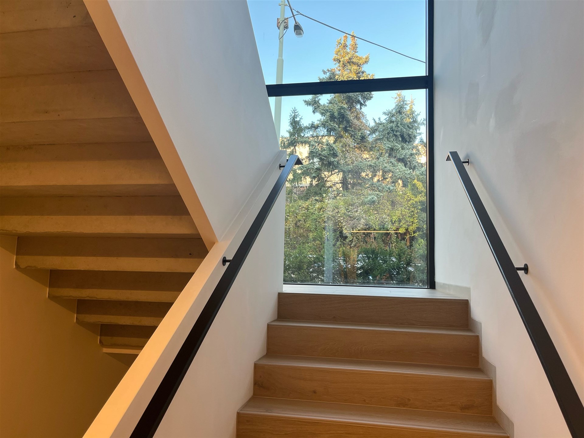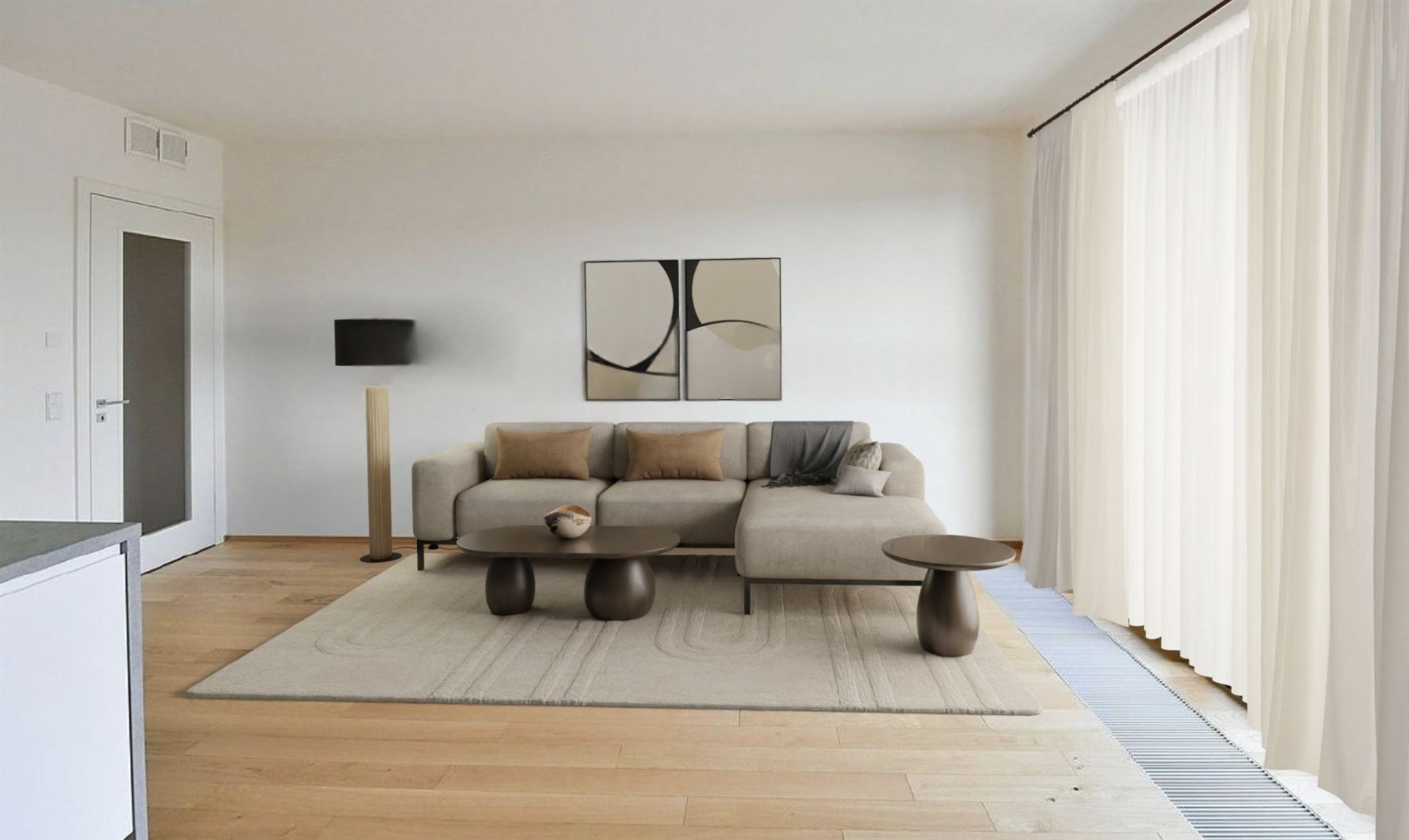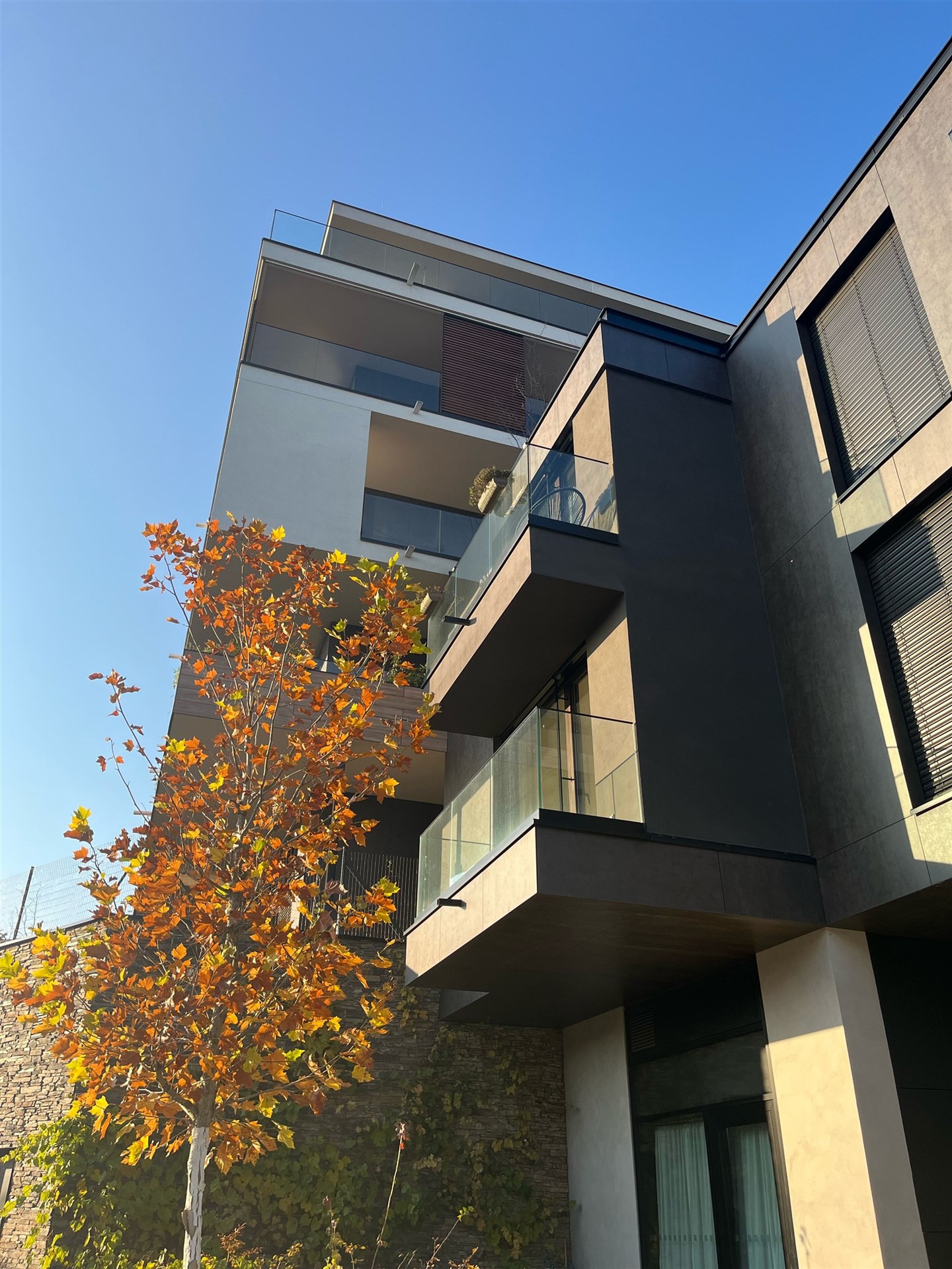 This modern apartment stands out for its quality materials: wooden floors, large-format wooden windows with triple glazing, electrically operated blinds, heat recovery, and ecological heating of the residence via a heat pump.