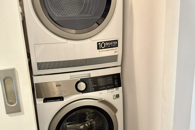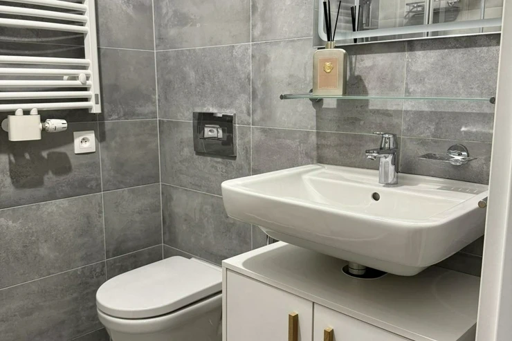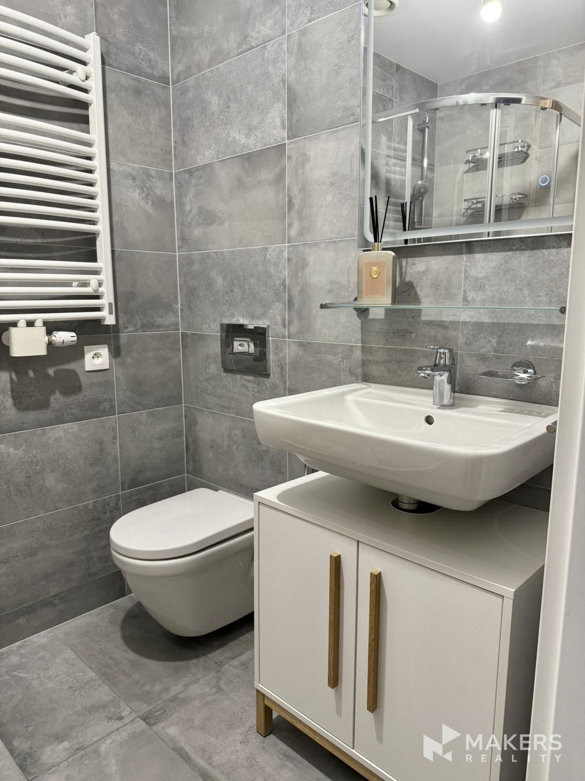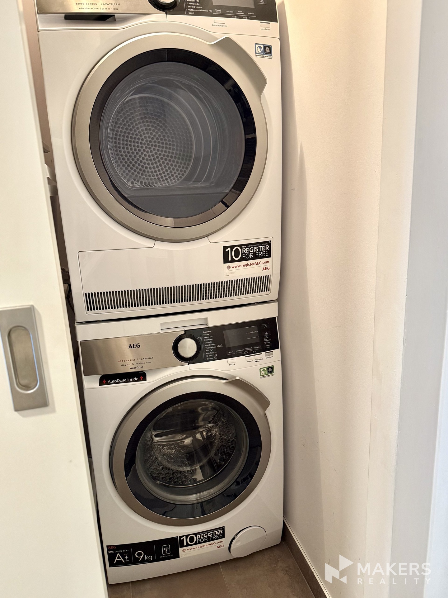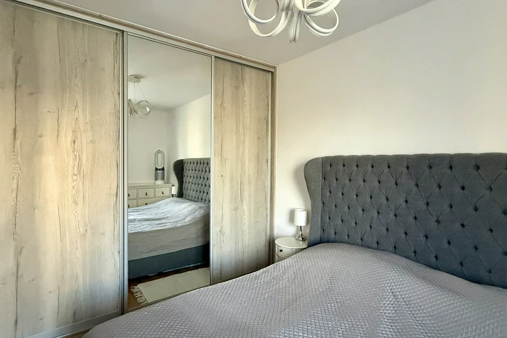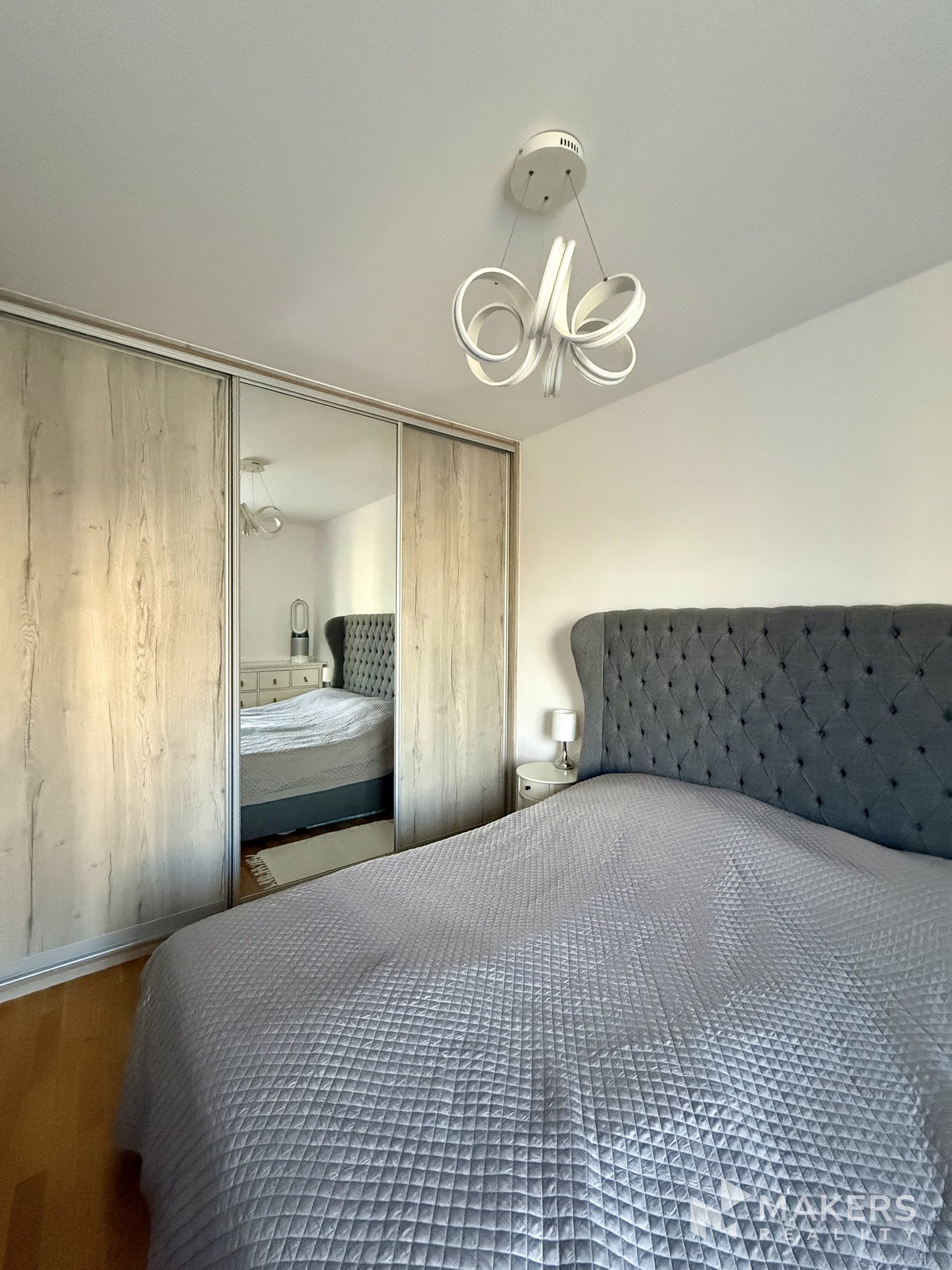 Both the living room and bedroom are tastefully furnished in timeless neutral tones. The spacious glazed loggia is accessible from the living area – perfect for morning coffee or evening relaxation.