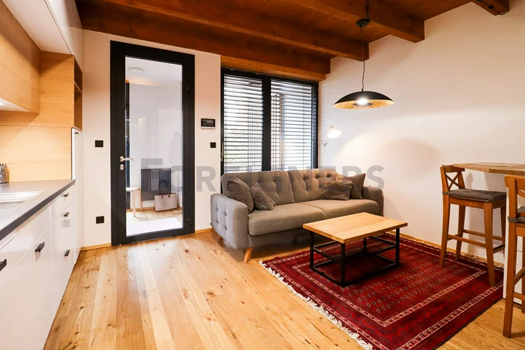The apartment is situated on the ground floor of a fully renovated building (renovation completed in 2020) and offers an excellent combination of comfort, privacy, and convenience — ideal for anyone seeking peaceful living close to the city center.