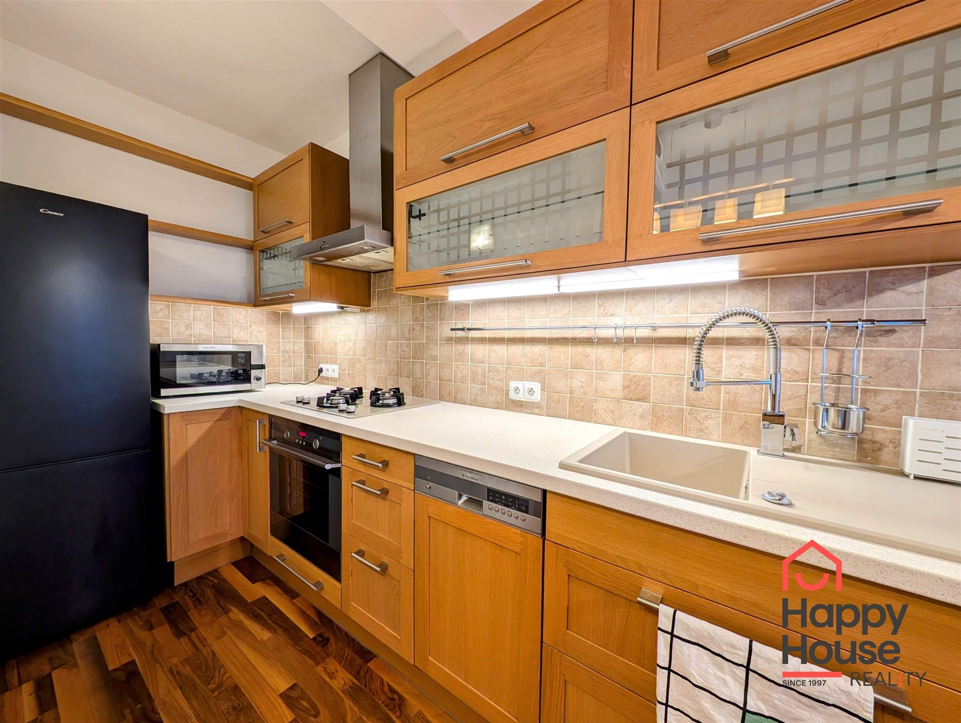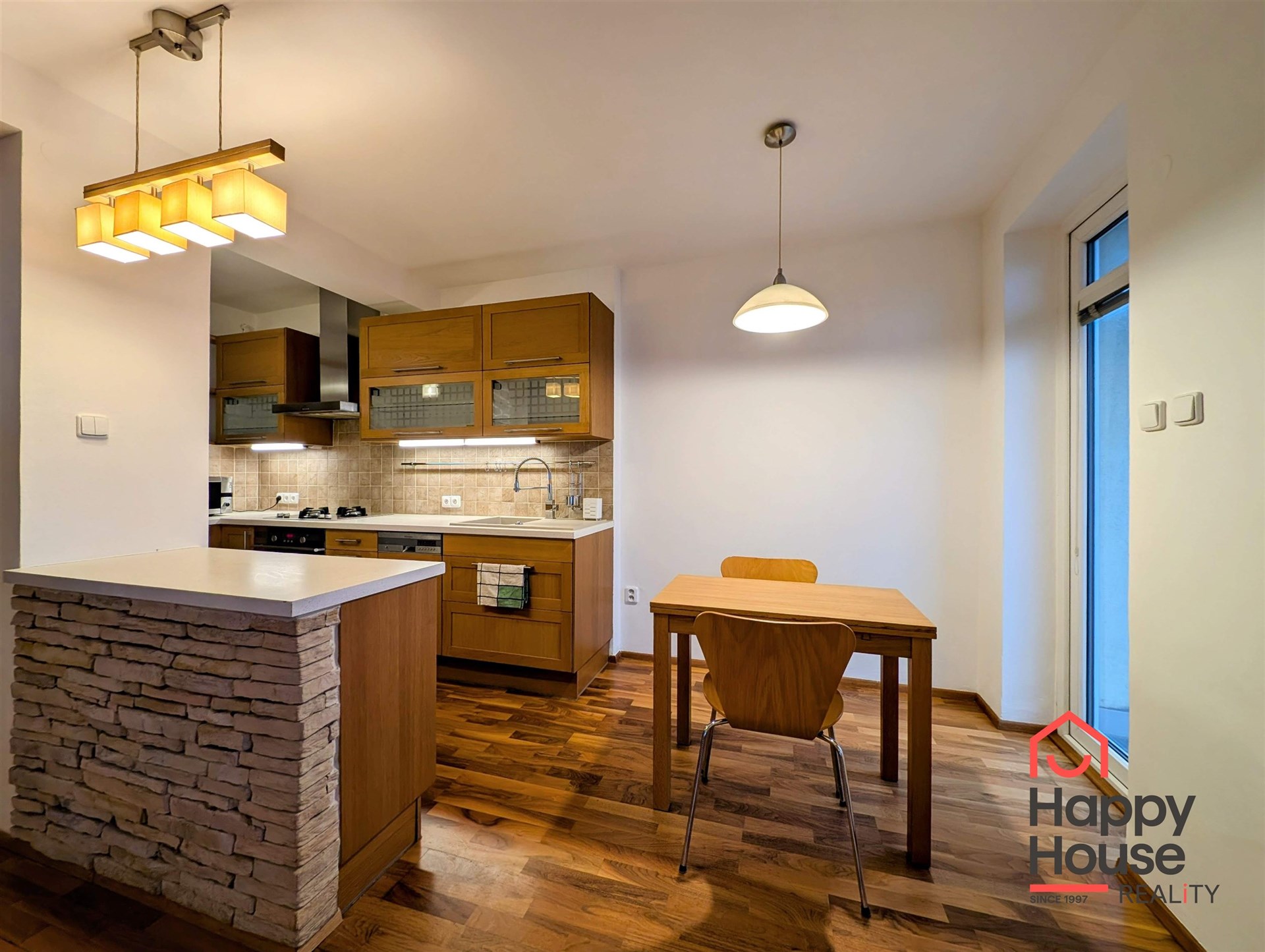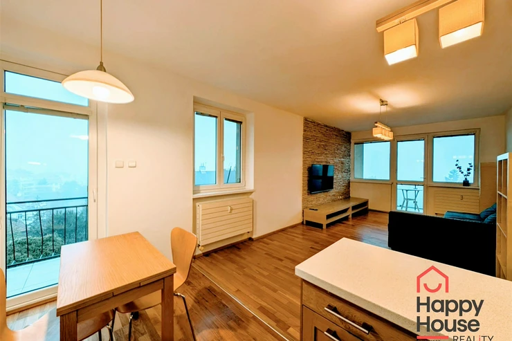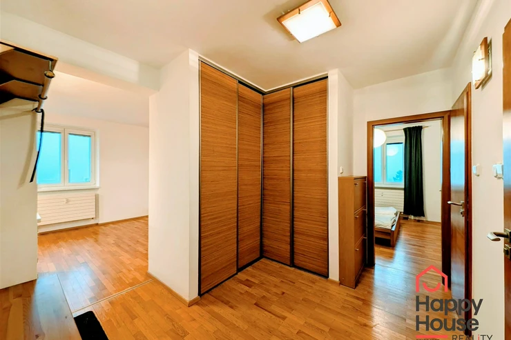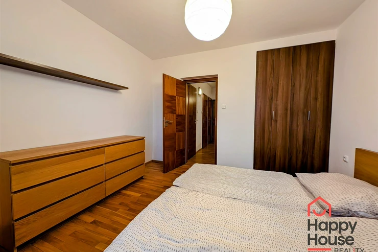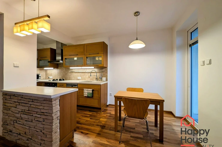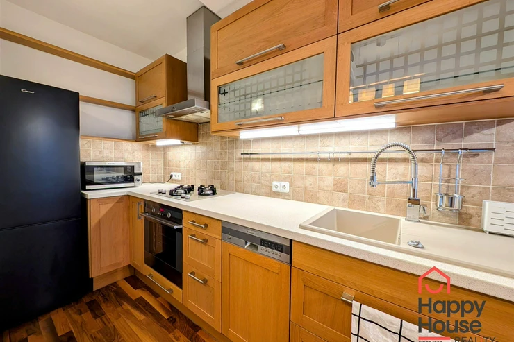 We offer you for rent a furnished modern one-bedroom apartment with a balcony, a loggia and a garage on the 4th floor of a brick building with an elevator in the popular part of Prague 5 – Smíchov, in the Malvazinky villa quarter. The kitchen includes kitchen unit, a refrigerator, a gas stove, an electric and microwave oven, a dishwasher, and an extractor hood. The bathroom has a bathtub and a washing machine; the toilet is separate. The floors are covered with parquet and tiles. Sufficient storage space is provided by practical built-in wardrobes and a pantry. The apartment also includes soundproof fire doors. Internet connection available. Parking is possible in the garage, which is included in the rent.