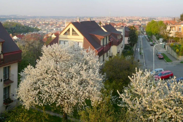 The apartment has a beautiful panoramic view of historic Prague. The apartment is located in a quiet street, near Santoška and Na Skalce parks, which provide space for relaxation, walks or sports activities. In the vicinity of the apartment, there is all civic amenities – shops, restaurants, cafes. Excellent transport accessibility – about three minutes' walk from the house is the Malvazinky bus stop, from where you can reach the Anděl metro station B in 6 minutes. A few minutes away lies the Nový Smíchov shopping center with a large number of shops, restaurants, and a multiplex cinema. For drivers, the quick connection to the city ring road and the D5 highway towards Pilsen is an advantage.