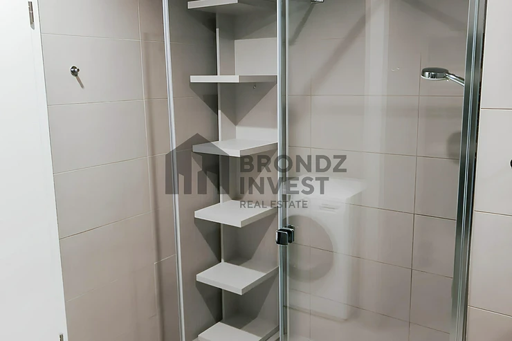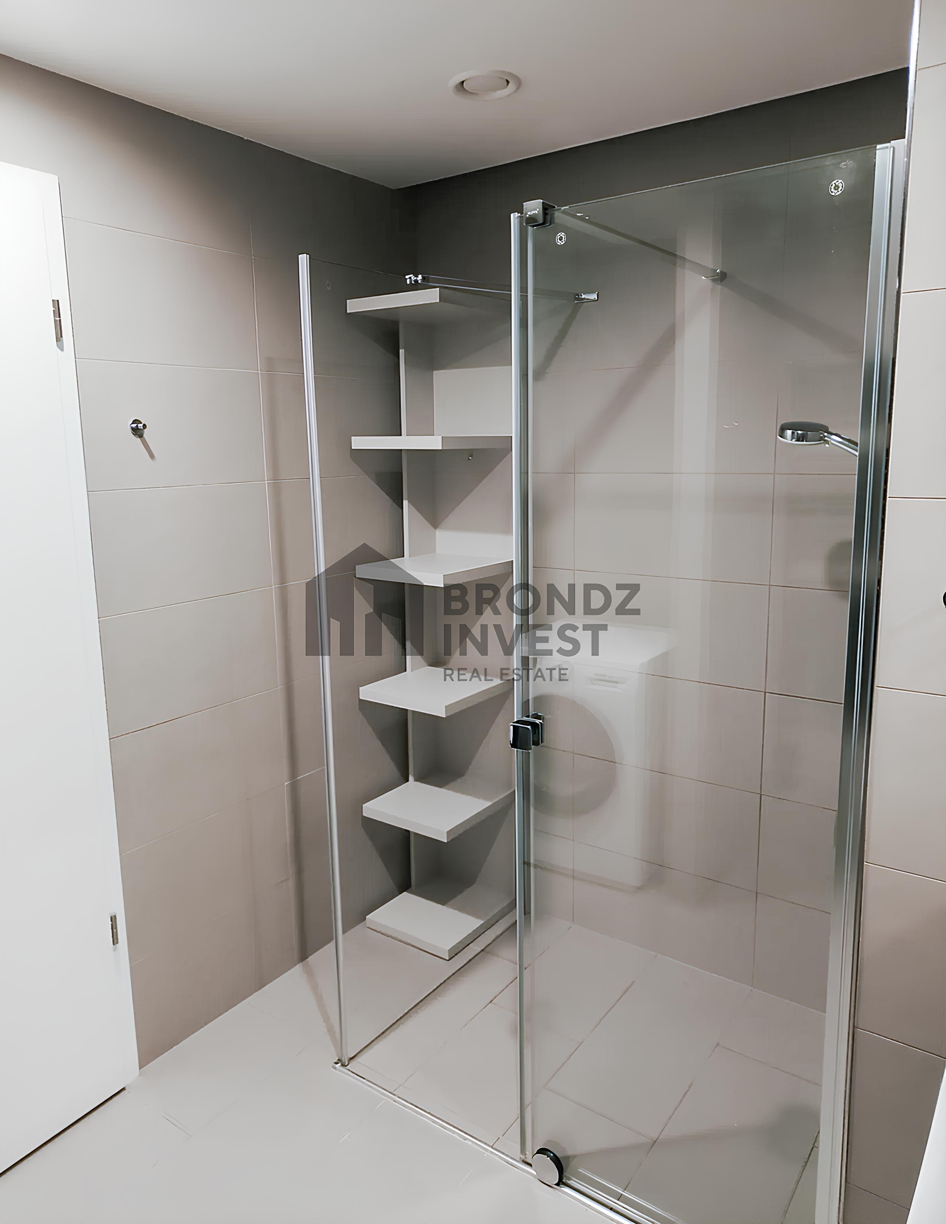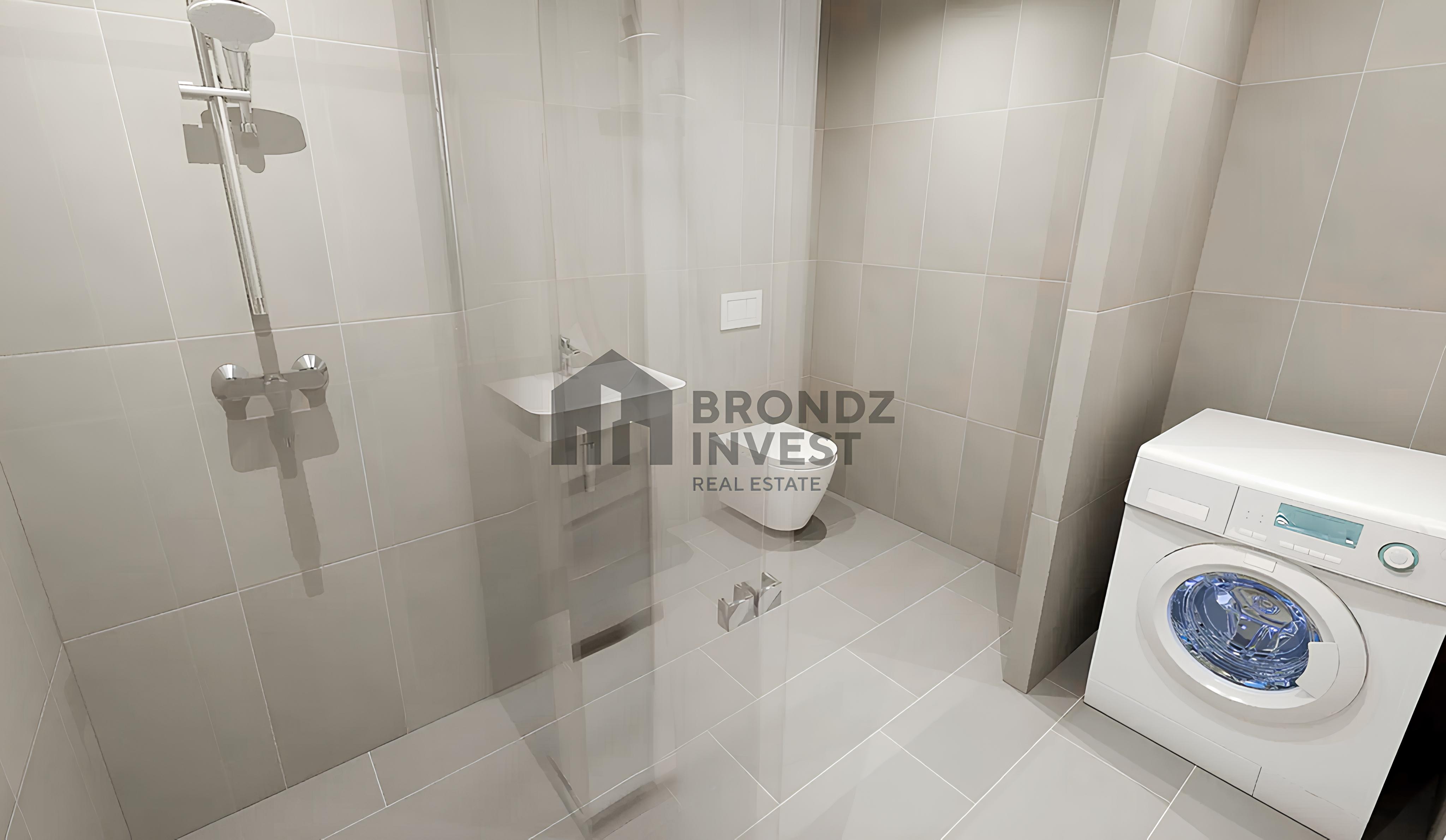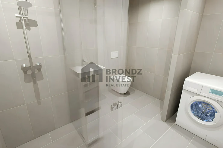 new kitchen with all appliances, dining table with chairs, TV stand, built-in wardrobe in the bedroom, bathroom furniture, washing machine, closet.