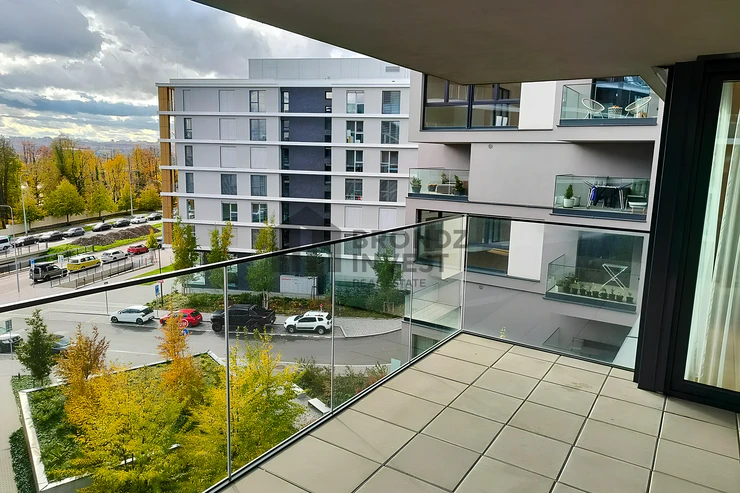 We offer for rent a bright 2+kk apartment with an area of 58 m² with a large covered balcony of 12 m², located in a new building in a quiet area.