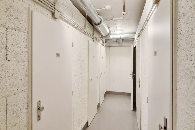 The 60 m² apartment comprises a bedroom (equipped with a wardrobe, a double bed, a chest of drawers, and bedside tables), a living room (furnished with a pull-out sofa set, 2 coffee tables, a dining table + 4 chairs, and a sideboard) with a kitchenette (including all appliances), a hallway, an in-apartment storage room, and a bathroom with a bathtub, toilet, and washing machine. Also available is a practical cellar space of about 3 m², offering additional storage.