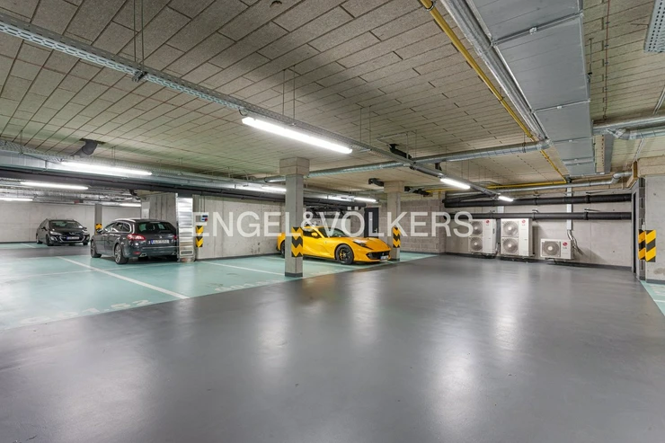 In the common areas of the house, there is a generous lounge and a small gym with basic equipment. There is a fully equipped fitness centre in the house that provides a discounted entrance fee to residents and also serves as a package store. There is also a 24/7 reception (7 am - 7 pm receptionist, 7 pm - 7 am security), and cleaning services or laundry and ironing can be arranged at the reception, which is included in the apartment fees.