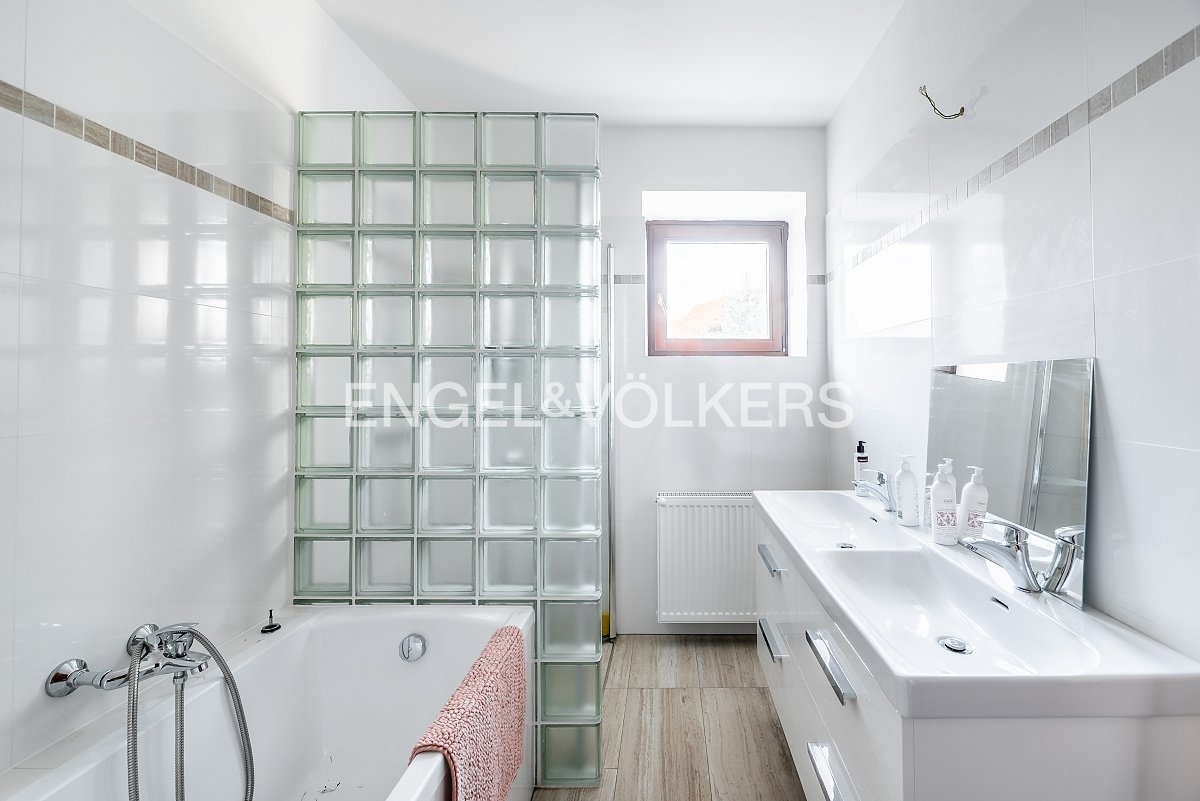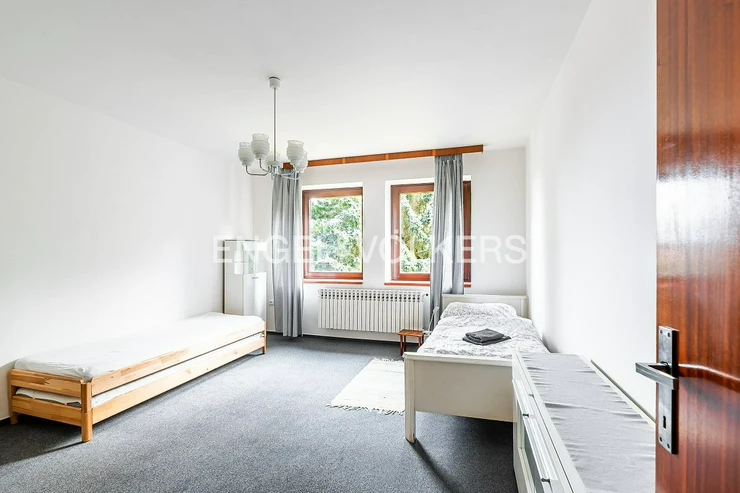 The surroundings provide excellent conditions for sports and walks in nature, while offering perfect transport connections to the center of Prague and the airport. The quiet residential neighborhood with an international school within walking distance is ideal for families with children.