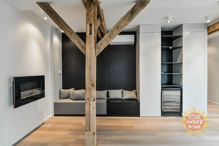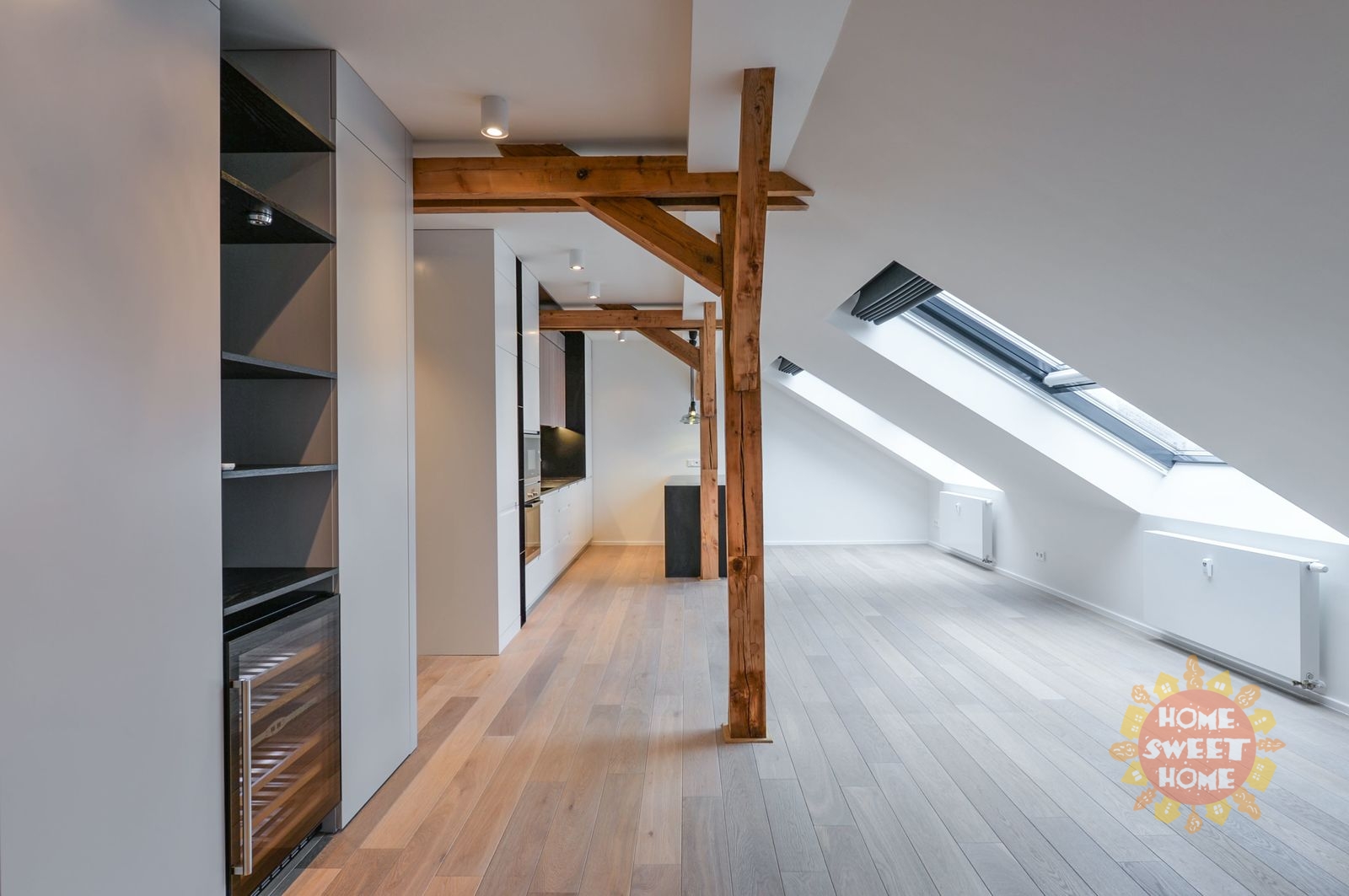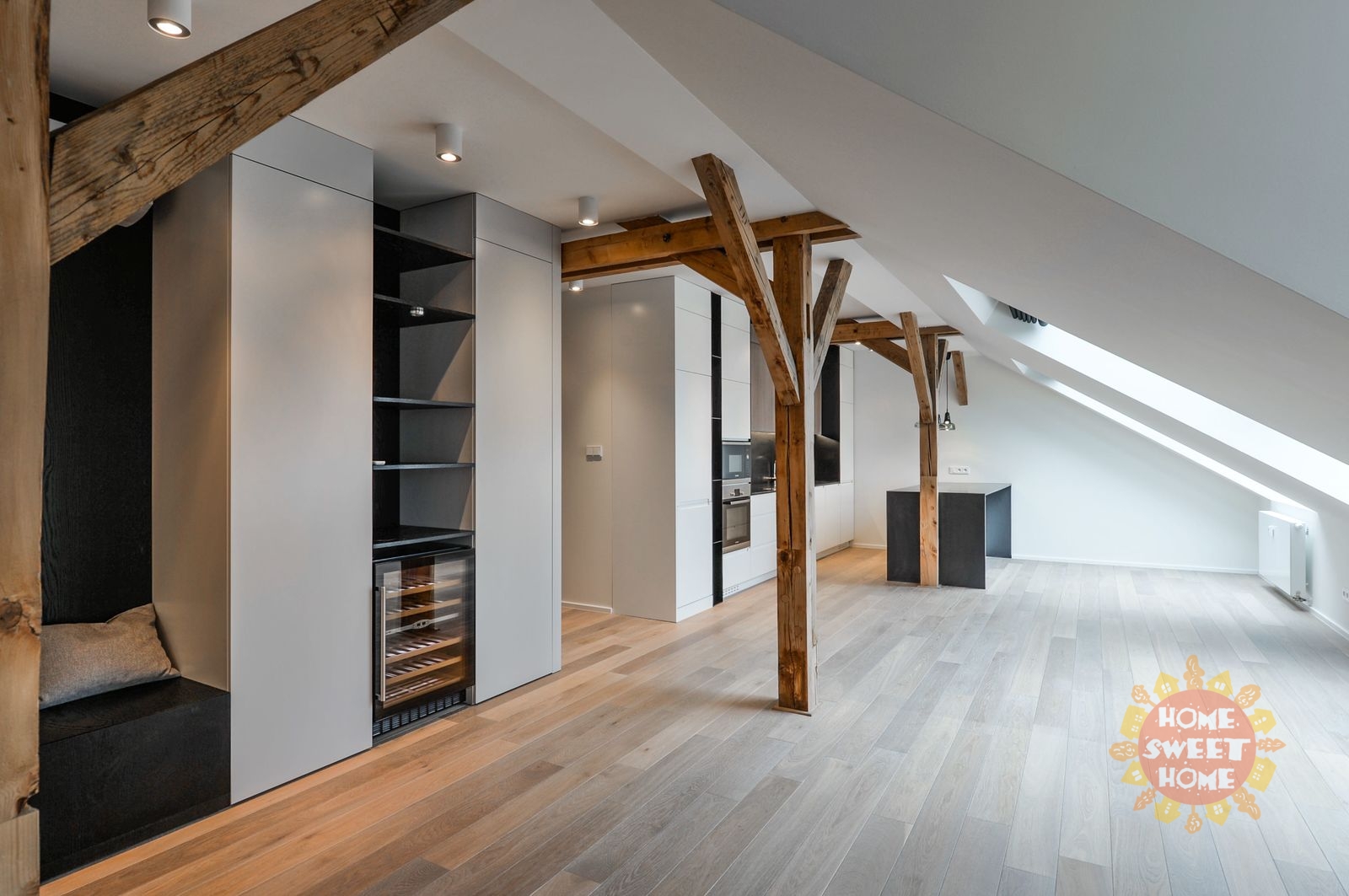 We offer for rent a unique renovated attic apartment 3+kk (156 sqm). The above-standard furnished apartment is located on the sixth above-ground floor of a sensitively renovated Art Nouveau apartment building with a lift in the popular Vinohrady area of Prague, in Náměstí Jiřího z Poděbrady Street.