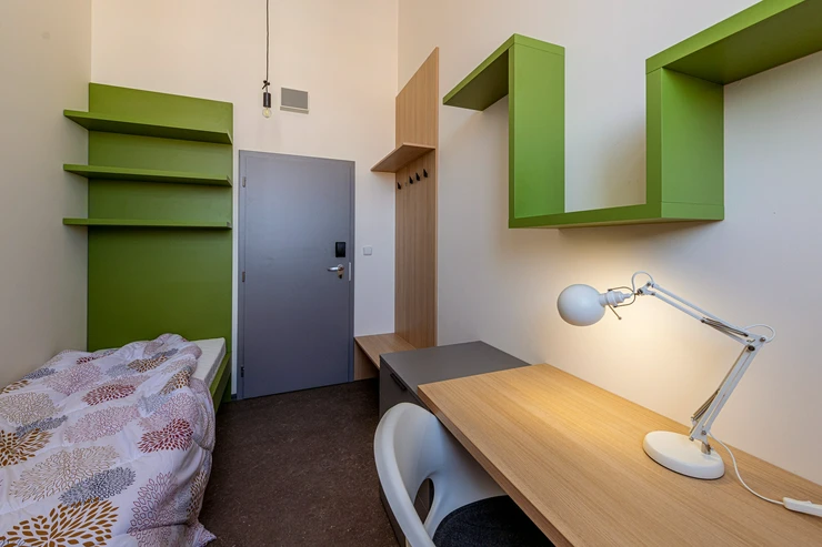 Rent starts from CZK 6,515 per month (approx. EUR 265). The price includes high-speed internet and bathroom cleaning twice a month.