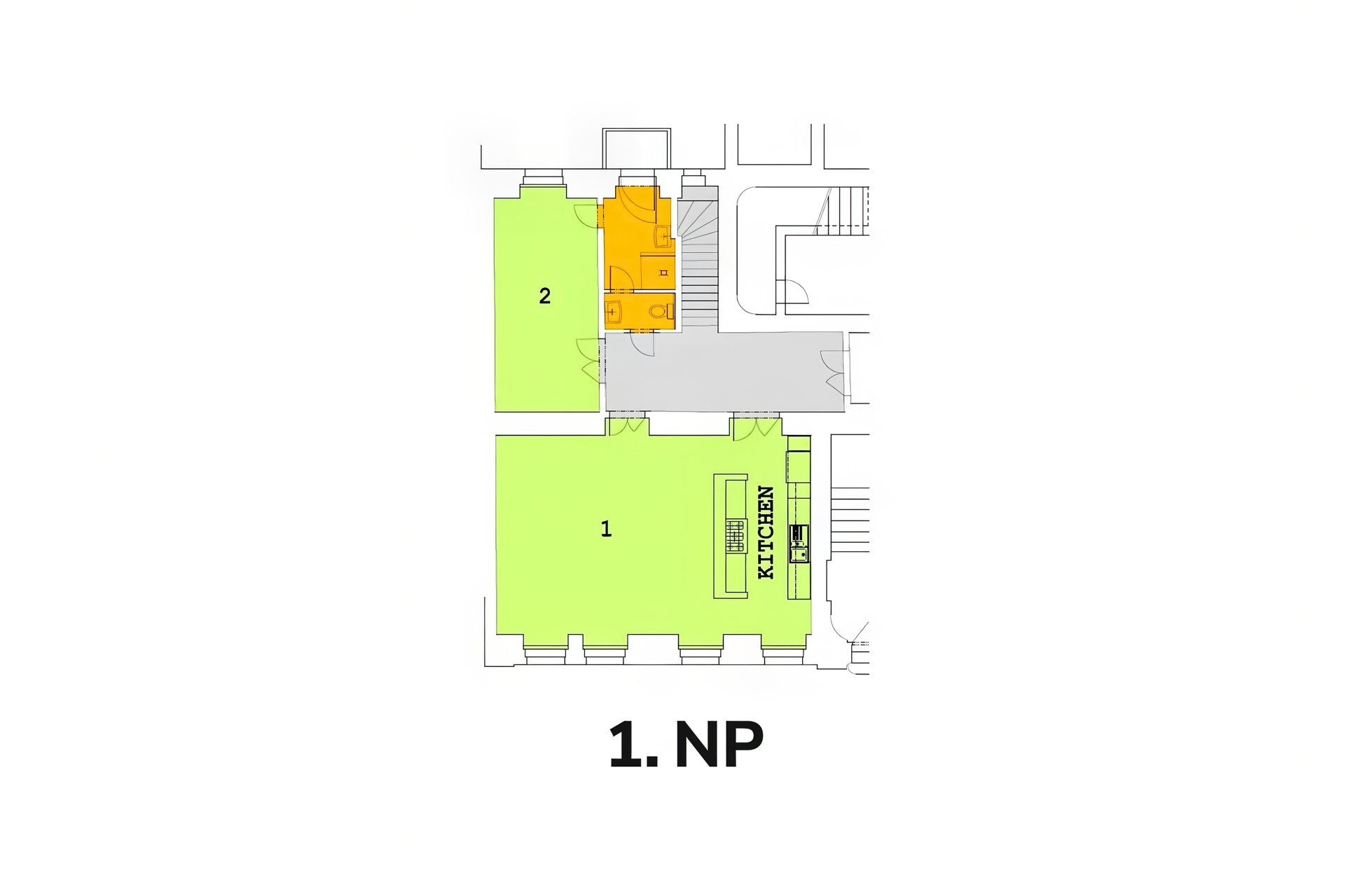 The location offers everything that makes life in Vinohrady (Vinohrady) so sought after: the iconic Riegrovy Sady Park (Riegrovy sady) with views of Hradčany (Hradčany), charming cafés and bistros, the popular farmers’ markets on Jiřího z Poděbrad Square (náměstí Jiřího z Poděbrad), and a wide variety of shops, restaurants, and fitness facilities. Excellent public transport access — the Vinohradská tržnice tram stop is just 3 minutes’ walk away, and Náměstí Míru and Jiřího z Poděbrad metro stations (line A) are both within easy walking distance.