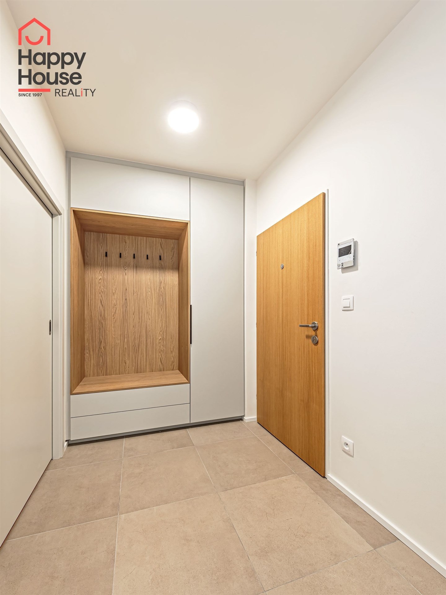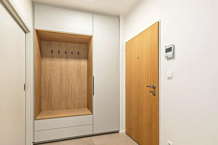 There are large built-in wardrobes in the hallway.