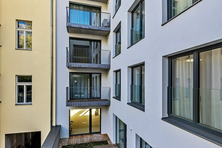 The building is located in a quiet part of Žižkov, below the Vítkov hill, with direct access to a bike trail and a pedestrian path leading through Vítkov to Karlín. Vítkov park is ideal for running, walking, cycling, and picnics. It offers beautiful views of Prague. The Vítkov tunnel "Neboj" is part of the main cycling route A25, which connects Žižkov with Karlín and the city center. Nearby is also the Pražačka Sports Complex with a swimming pool, playgrounds, and a fitness center.