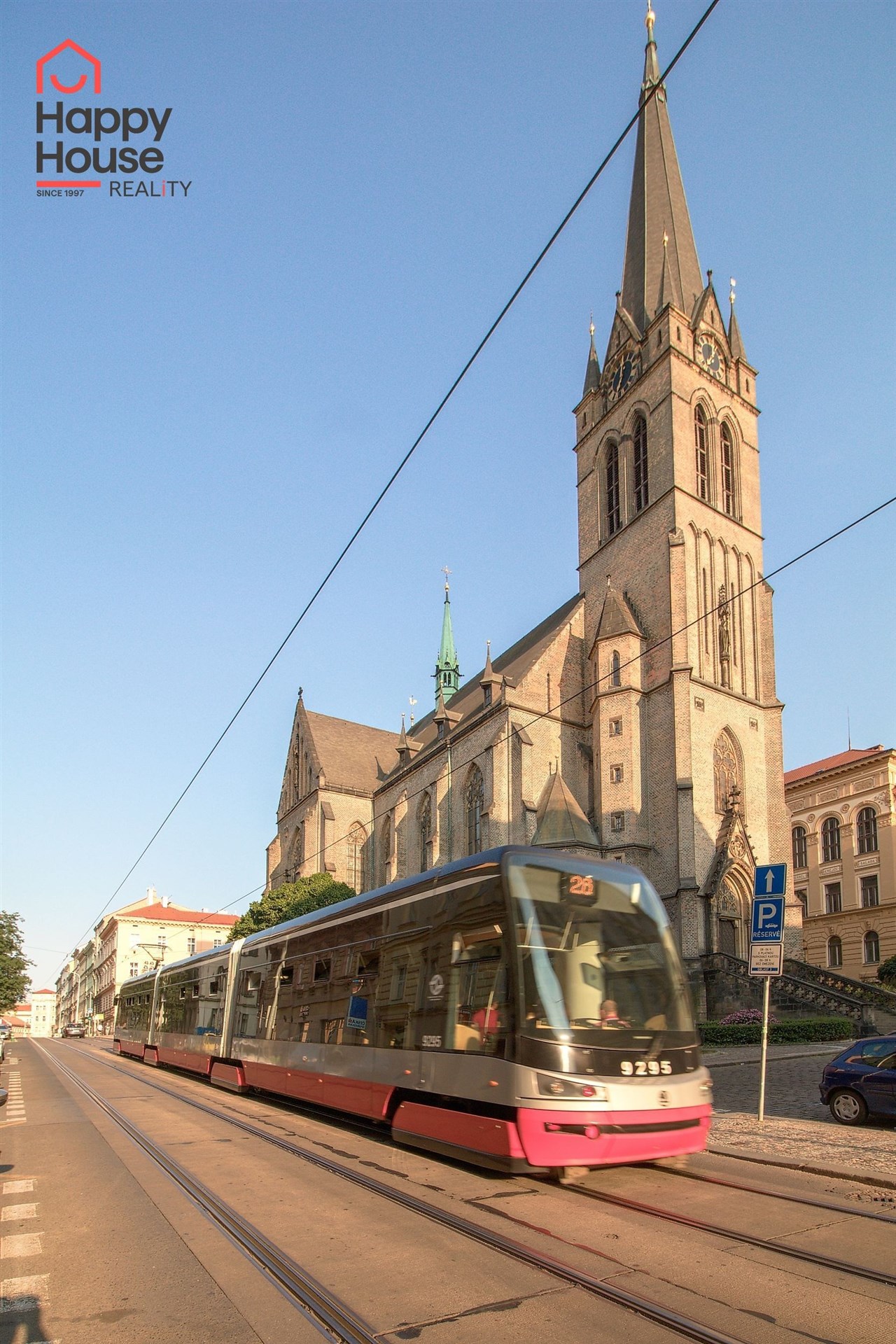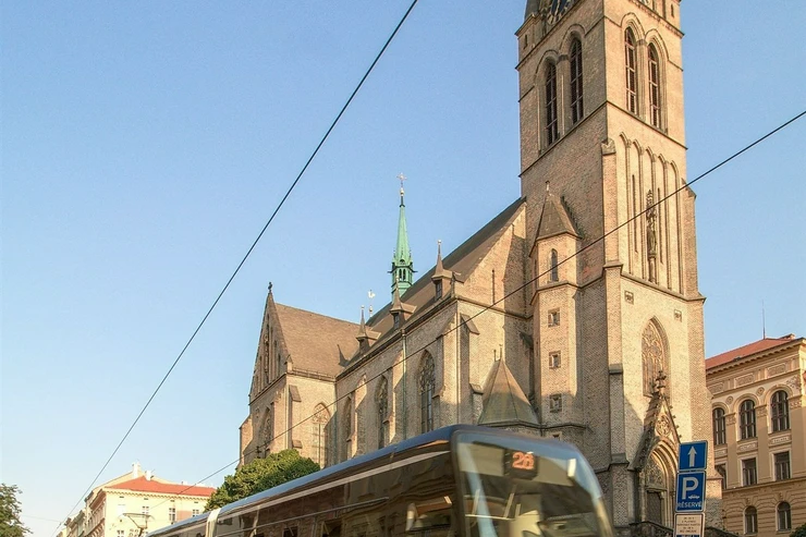The Husinecká tram stop (lines 5, 9, 15, 26) is a 5-minute walk from the building.