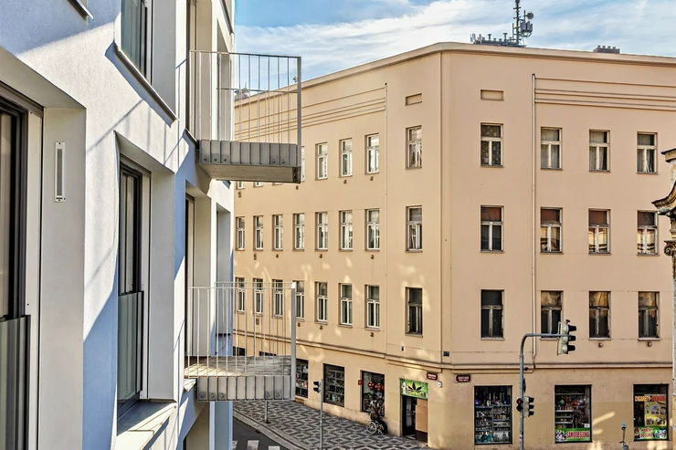 The house is located in a quiet part of Žižkov, underneath Vítkov hill, with direct access to a bike path and a walking trail leading through Vítkov to Karlín. Vítkov Park is ideal for running, walking, cycling, and picnics. It offers beautiful views of Prague. The Vítkov tunnel "Neboj" is part of the main A25 bicycle route, connecting Žižkov with Karlín and the city center. Nearby, there is also the Pražačka Sports Complex with a swimming pool, playgrounds, and a fitness center.