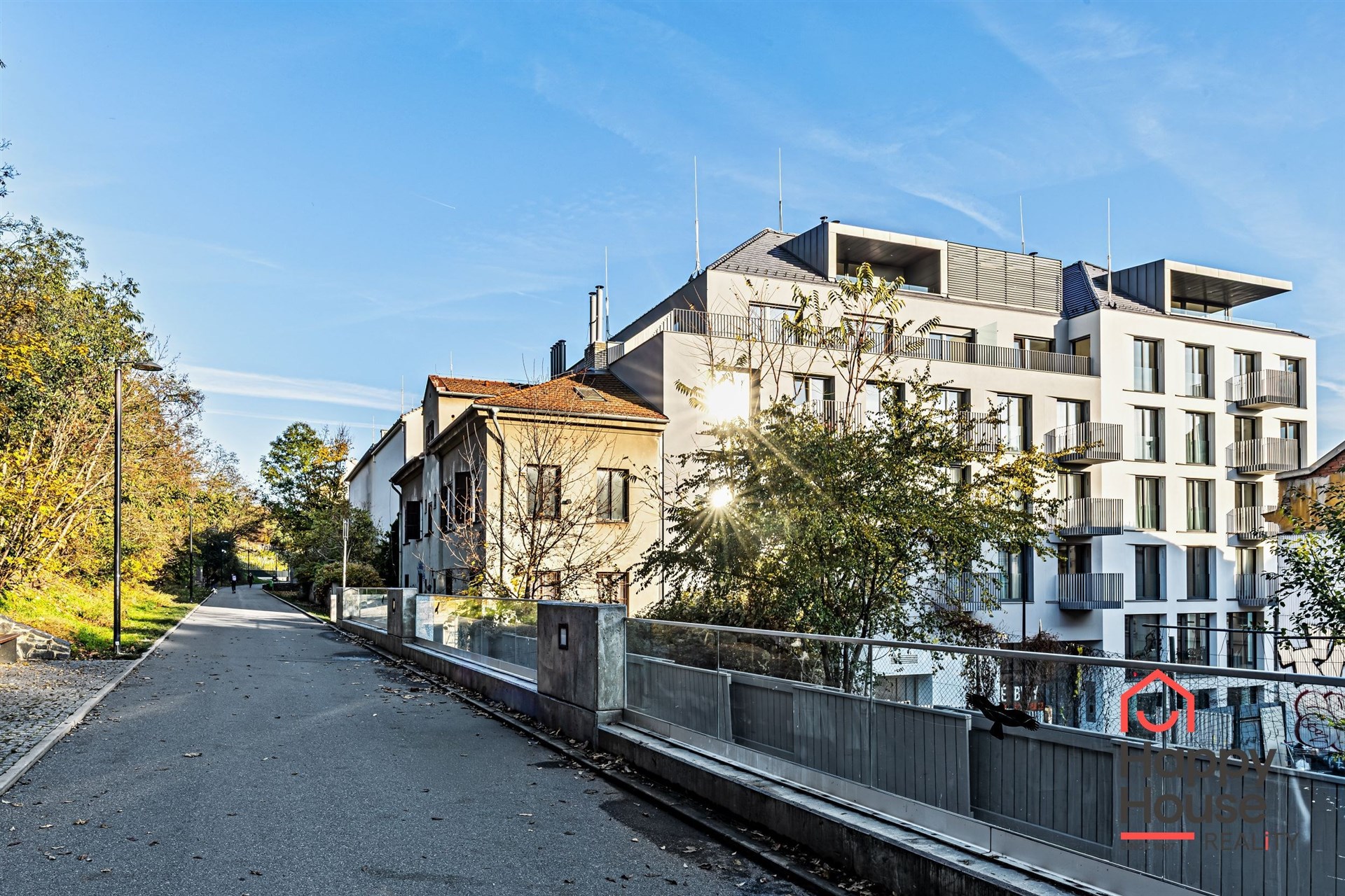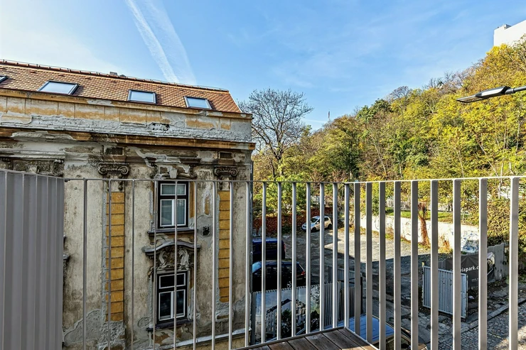 The building is located in a quiet part of Žižkov, below the Vítkov hill, with direct access to a bike path and a pedestrian route that leads through Vítkov to Karlín. Vítkov Park is ideal for running, walking, cycling, and picnics, offering beautiful views of Prague. The Vítkov tunnel "Neboj" is part of the main cycling route A25, which connects Žižkov with Karlín and the city center. Near the building, there is also the Pražačka Sports Complex with a pool, sports fields, and a fitness center.