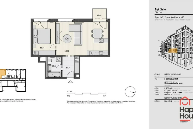 Charges are CZK 3,996 (hot and cold water, heating, waste, elevator, cleaning, etc.) + electricity (approx. CZK 1,000), which is transferred to the tenant. Real estate agency commission is 1x monthly rent + VAT.