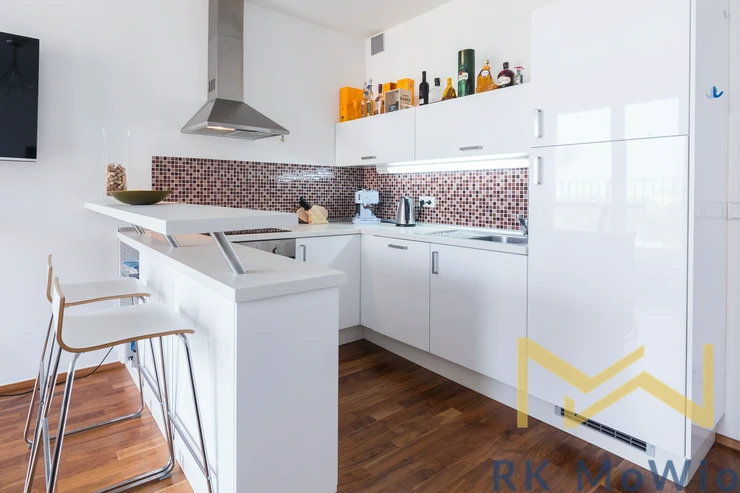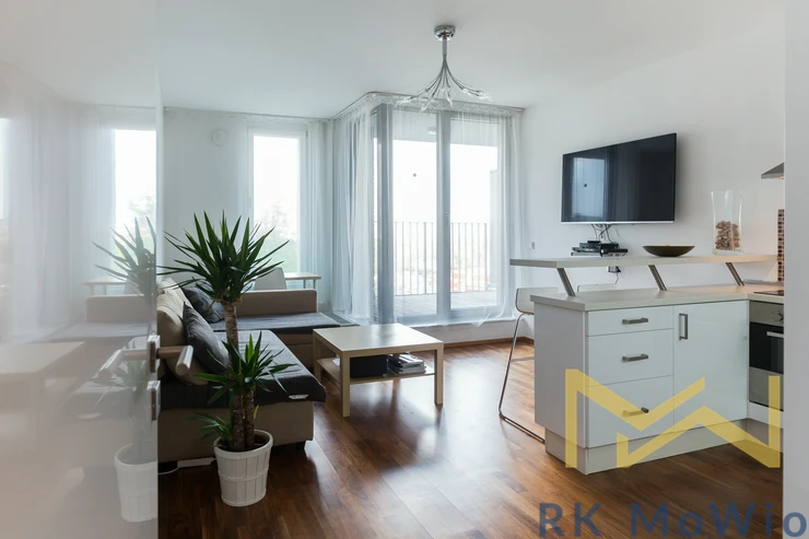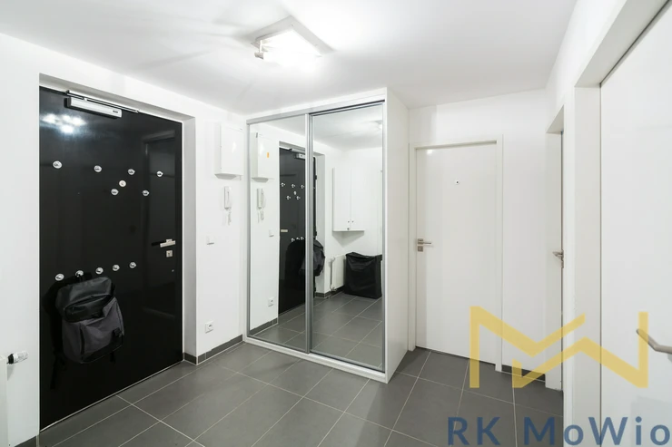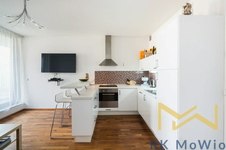The layout of the apartment includes an entrance hall, a living room with access to the terrace, a kitchen with dining area, a bedroom, one bathroom (with bathtub, washbasin), an extra toilet and a small utility room. The apartment is equipped with a kitchen unit (including refrigerator with freezer, glass-ceramic hob, extractor hood, dishwasher and electric oven), built-in wardrobes, washing machine and dryer, preparation for high-speed internet connection, wooden floors and tiles. The apartment comes with parking space No. 29 and cellar No. 8. THE APARTMENT IS AVAILABLE FROM JANUARY 1, 2026, WITH HANDOVER ON JANUARY 5, 2026.