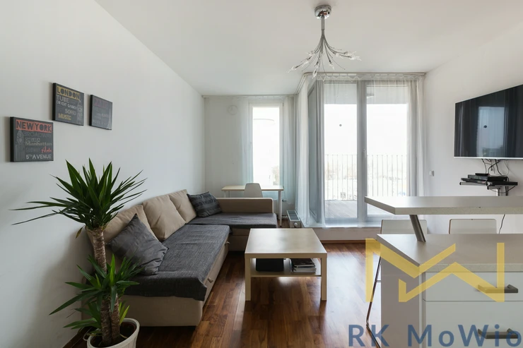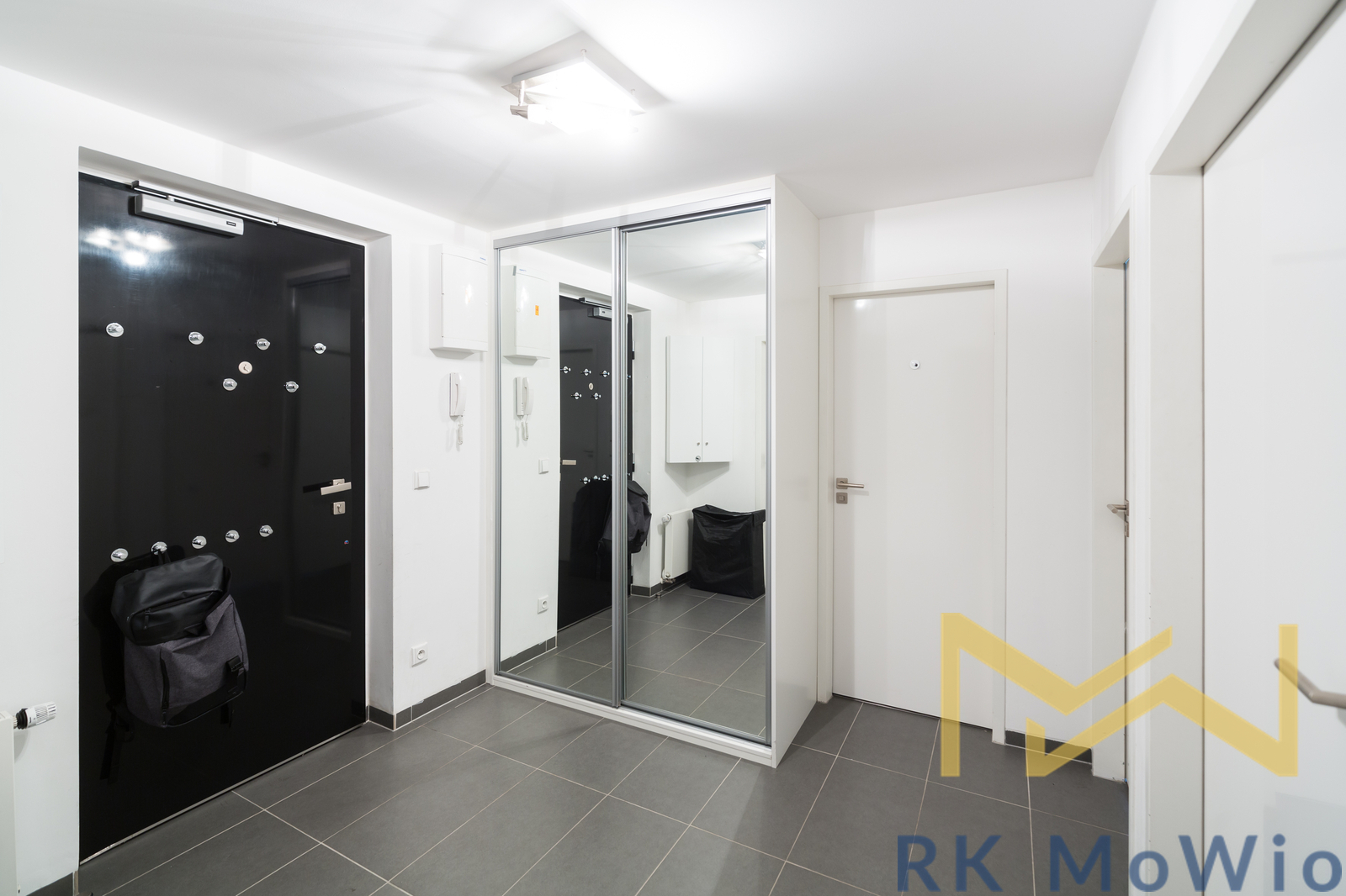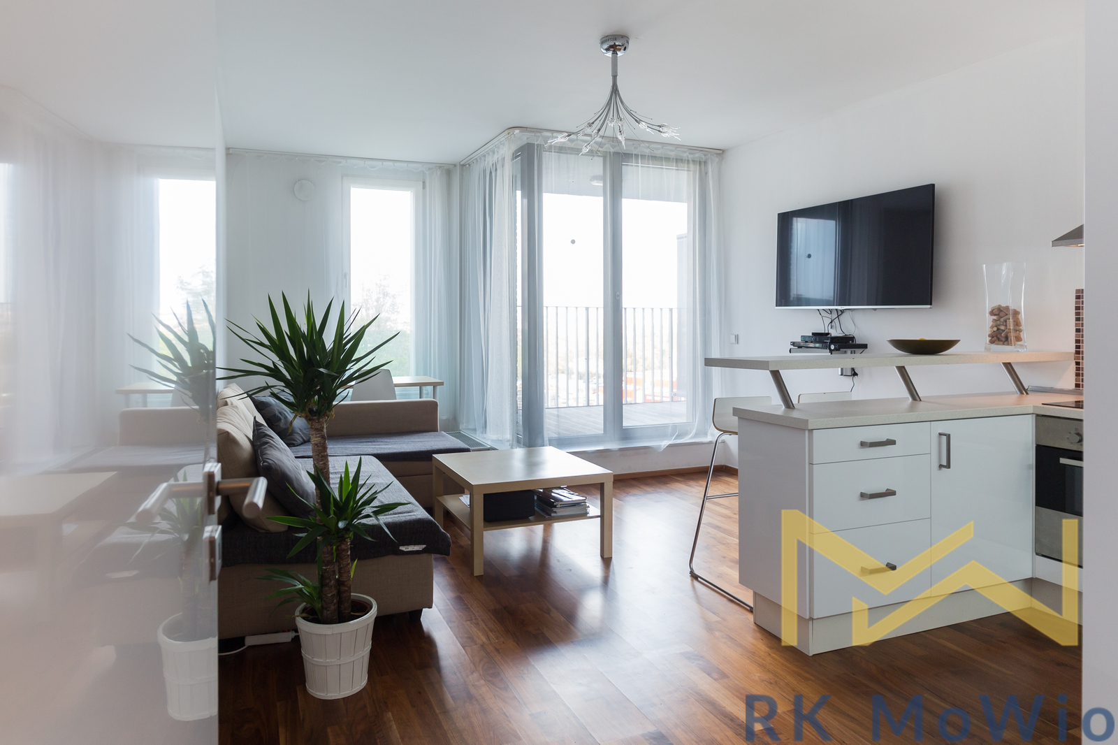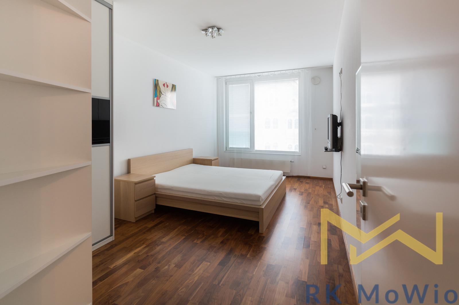 We offer for rent a furnished one bedroom apartment with a floor area of 56 sqm with a terrace of 3.9 sqm, situated on the 2nd floor (3rd above-ground level) of a modern building with an elevator in the Sacre Coeur Residence, Švédská Street, Prague 5 – Smíchov.