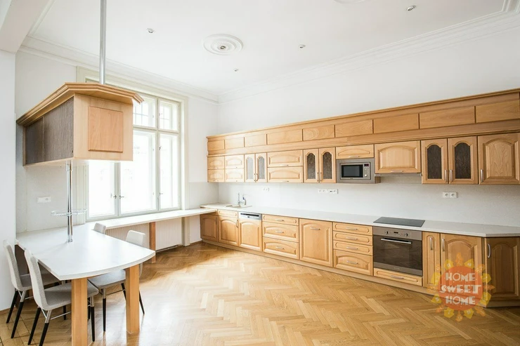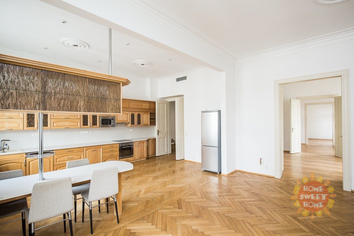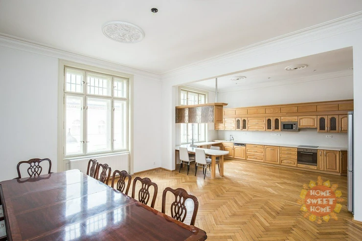 Luxurious, spacious, unfurnished apartment 5+1 (200 m2) is located at the 5th floor (with elevator) in a nice brick house in the very center of Prague near the Old Town Square. Kitchen is equipped with all appliances. There are 2 bathrooms - first with a toalet and shower and second one with toalet, bathtub and sauna. A wireless internet connection available, as well as satellite TV, telephone and air condition. Perfect location with excellent transport accessability and all civic amenities. In the neighbourhood of the apartment there are many cultural monuments, theaters and ancient Jewish cemetery, very nice place for visit.