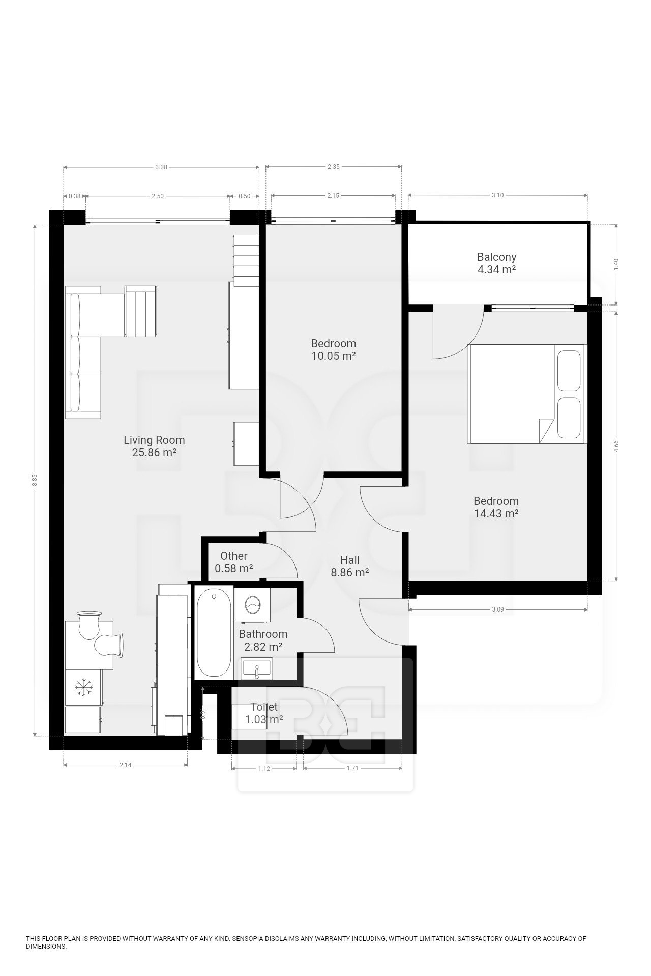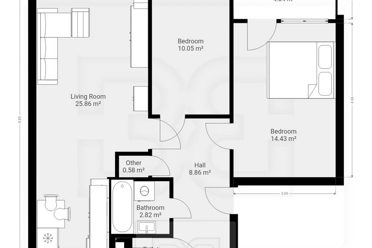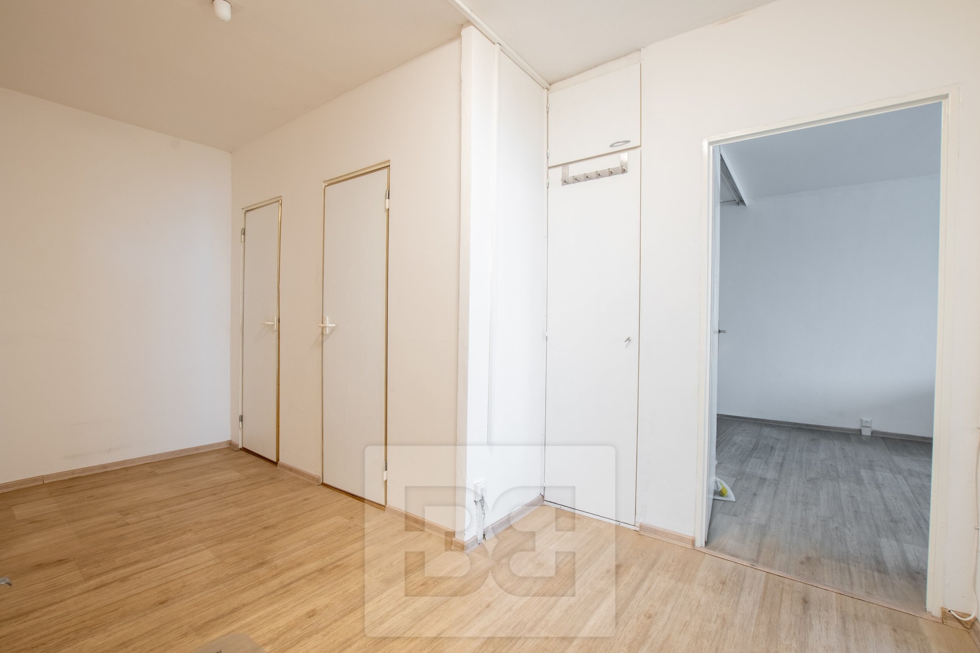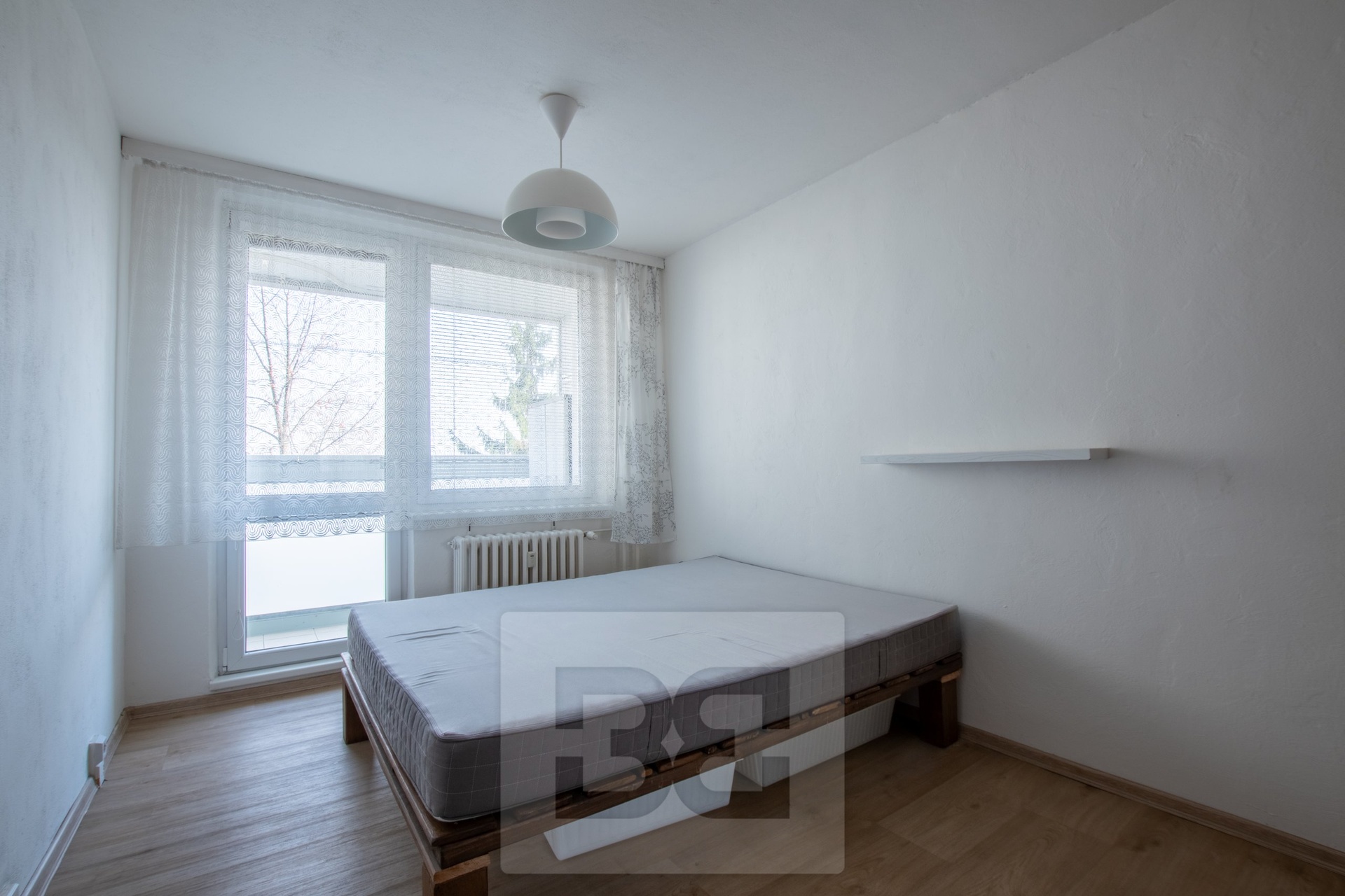 The apartment offers two separate bedrooms. The larger bedroom is furnished with a double bed and a spacious wardrobe with a large mirror. The smaller room is empty and ready to be arranged according to your needs — as a children’s room, home office, or second bedroom. Both rooms are bright and face a quiet part of the surrounding neighbourhood.