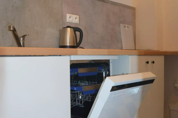 Shared kitchen equipped with: fridge, stovetop, extractor hood, dishwasher, microwave, kettle, basic cookware and dishes